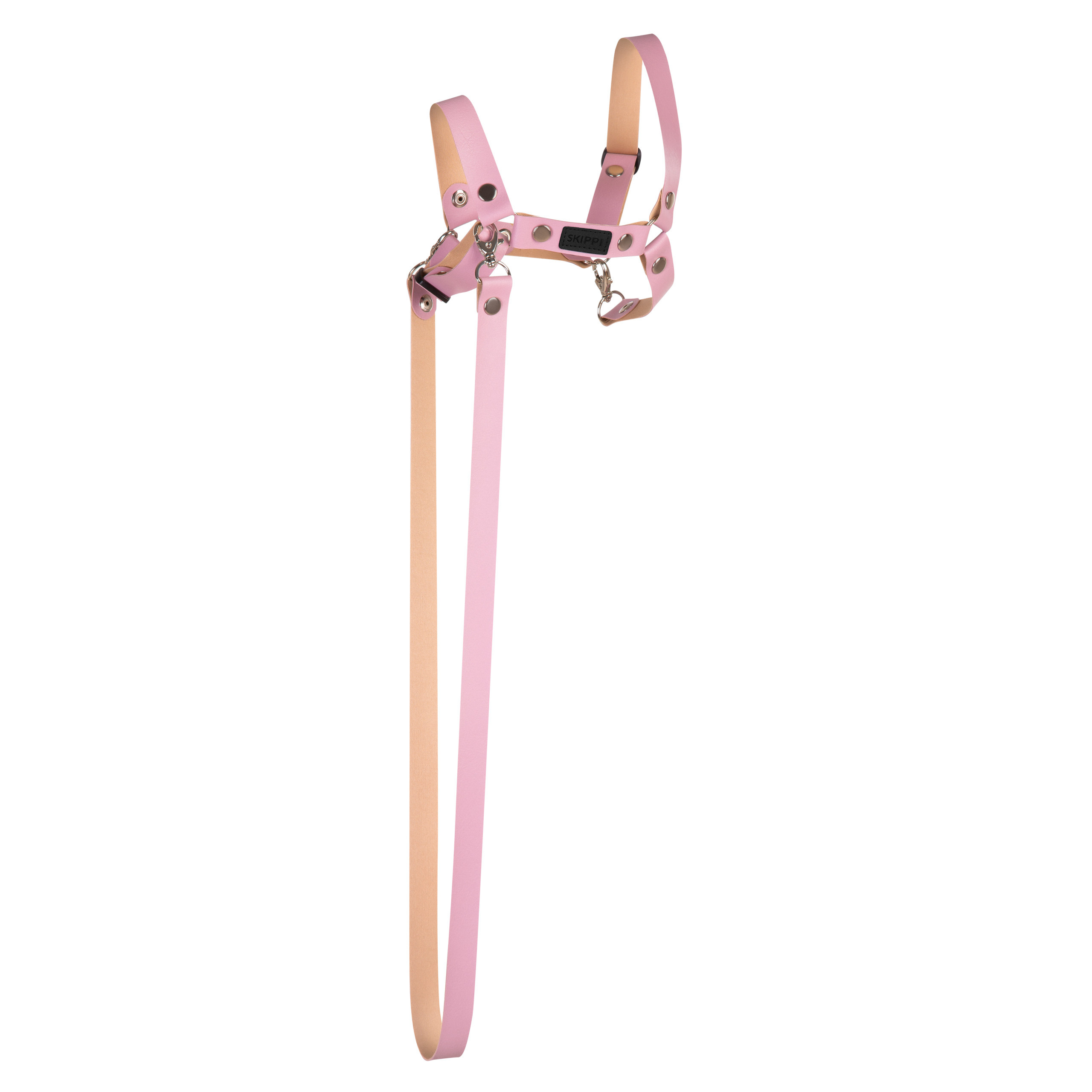 Kantar z wodzami Skippi w odcieniu delikatnego różu to połączenie stylu, jakości i funkcjonalności. Wykonany z wysokiej jakości ekoskóry (PVC) i ozdobiony subtelnymi metalowymi ćwiekami, idealnie wpisuje się w klimat świata Hobby Horse – pełnego pasji, zabawy i elegancji.