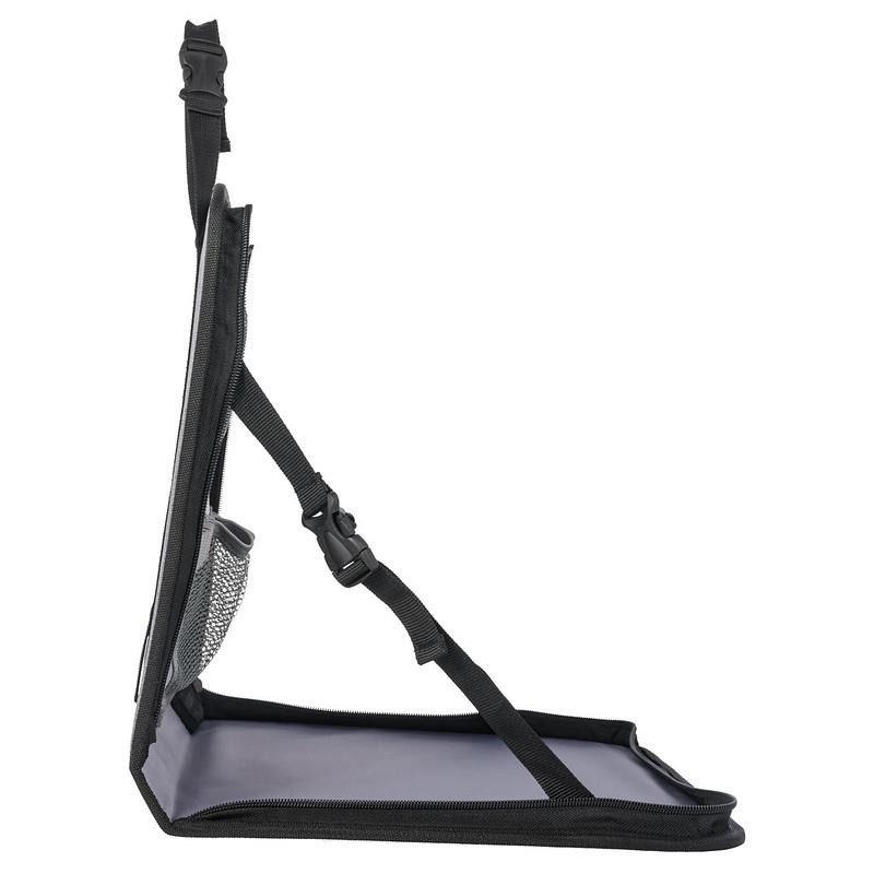 Składana tacka z miejscem na tablet, organizerem i stolikiem do rysowania – niezbędna w podróży z dzieckiem. Pasuje do większości foteli samochodowych.