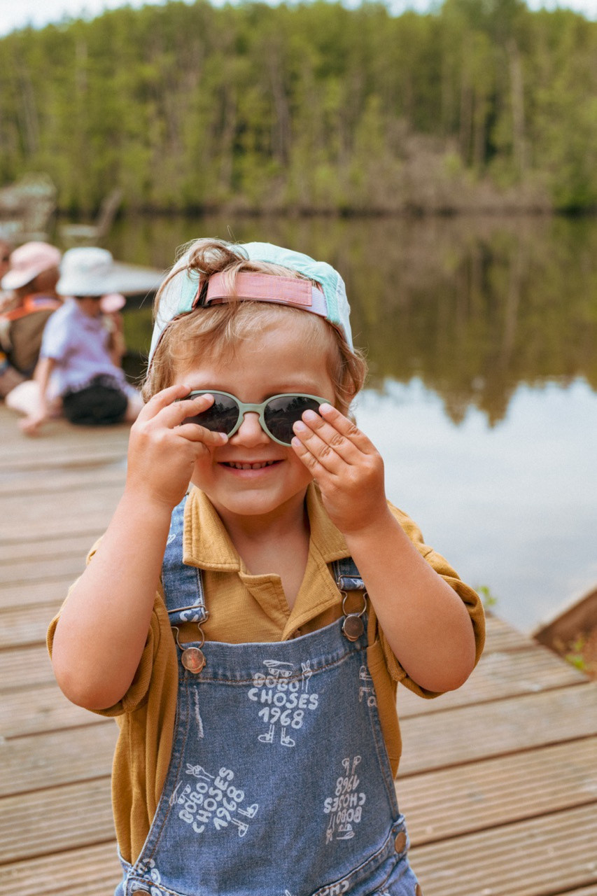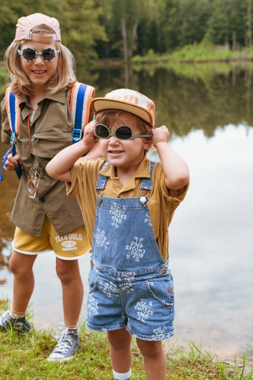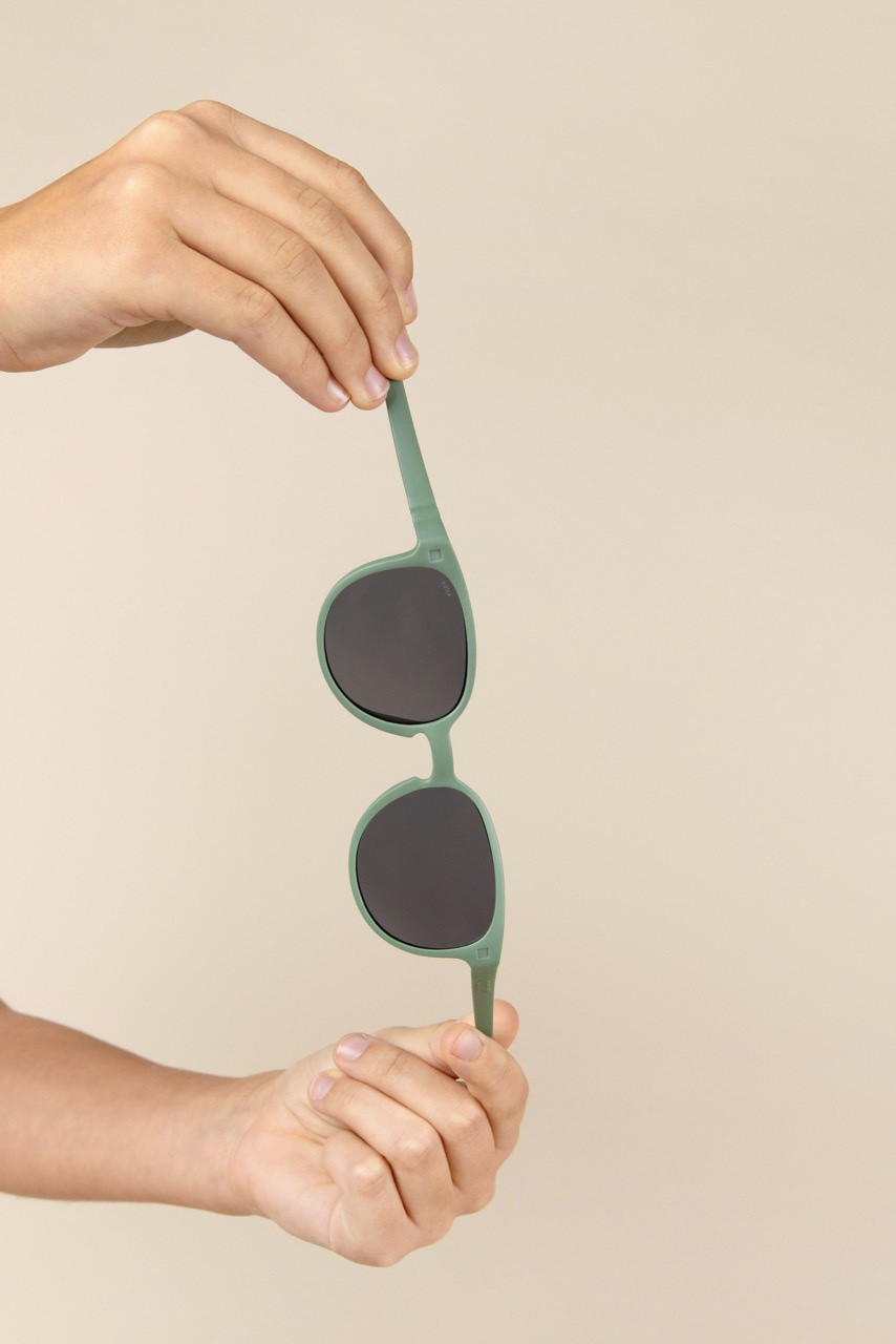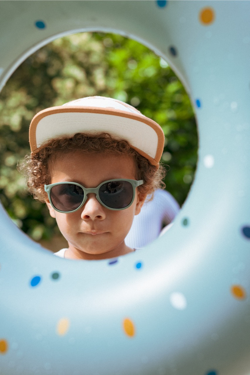 Kolekcja WaZZ wyróżnia się ponadczasowym kształtem, który nie wygląda dziecięco w oczywisty sposób. Dzięki temu okularki dobrze wpisują się w potrzeby dzieci, które lubią dodatki przypominające akcesoria noszone przez starszych domowników. Kaki, czyli zieleń w stonowanym odcieniu, to kolor uniwersalny i praktyczny. Pasuje do neutralnych ubrań, letnich kurtek, czapek z daszkiem i akcesoriów w stylu outdoorowym. To także dobra opcja dla osób, które szukają mniej oczywistej alternatywy dla czerni lub granatu.