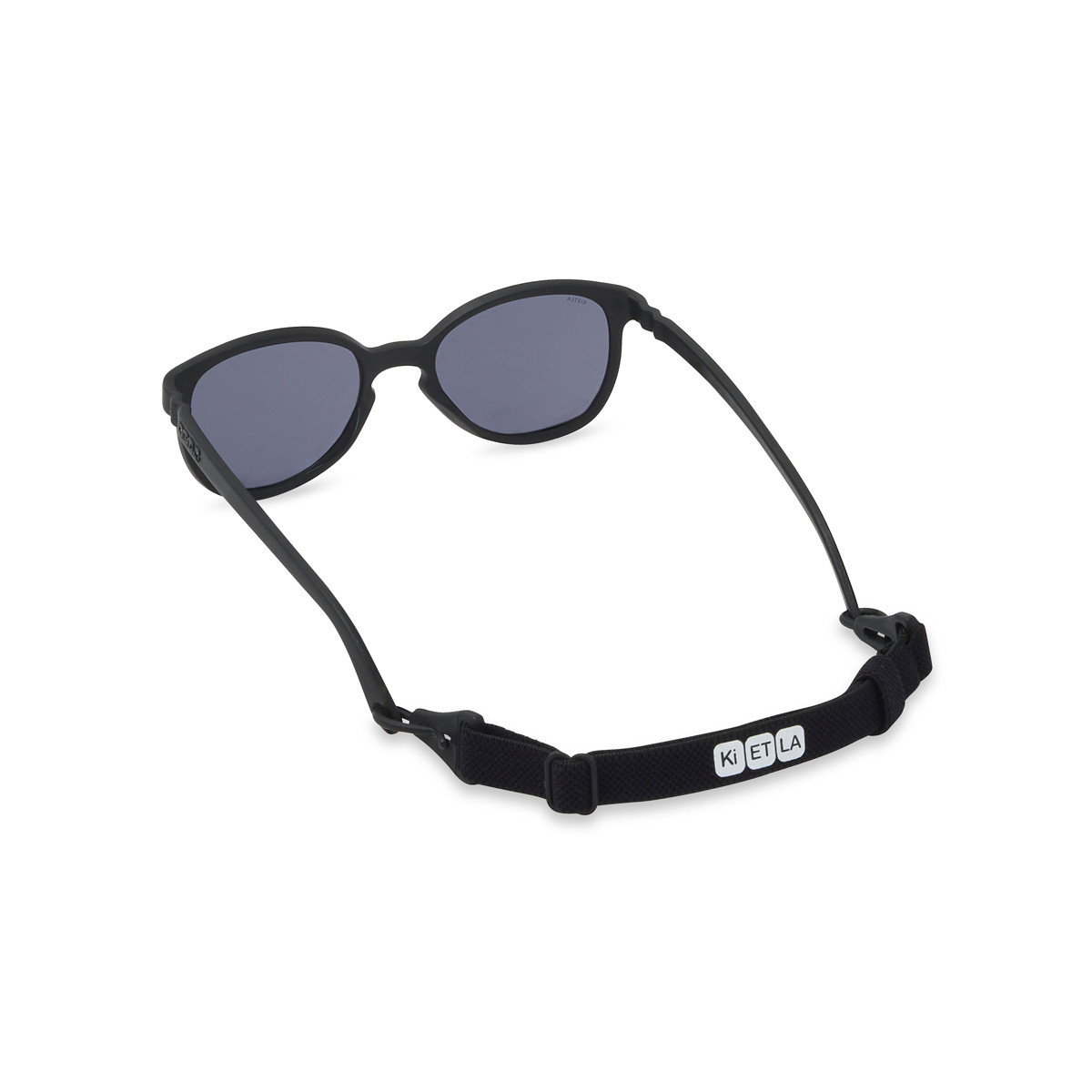 Do okularów dołączony jest woreczek z mikrofibry oraz regulowany sznureczek. Na zdjęciach produktu widać również, że czarny wariant prezentowany jest z tymi akcesoriami oraz opakowaniem marki. Woreczek ułatwia przechowywanie okularów w plecaku lub torbie, a sznureczek pomaga utrzymać je blisko dziecka podczas ruchu. Producent informuje także, że oprawki mogą zostać dopasowane do szkieł korekcyjnych na zamówienie u optyka.