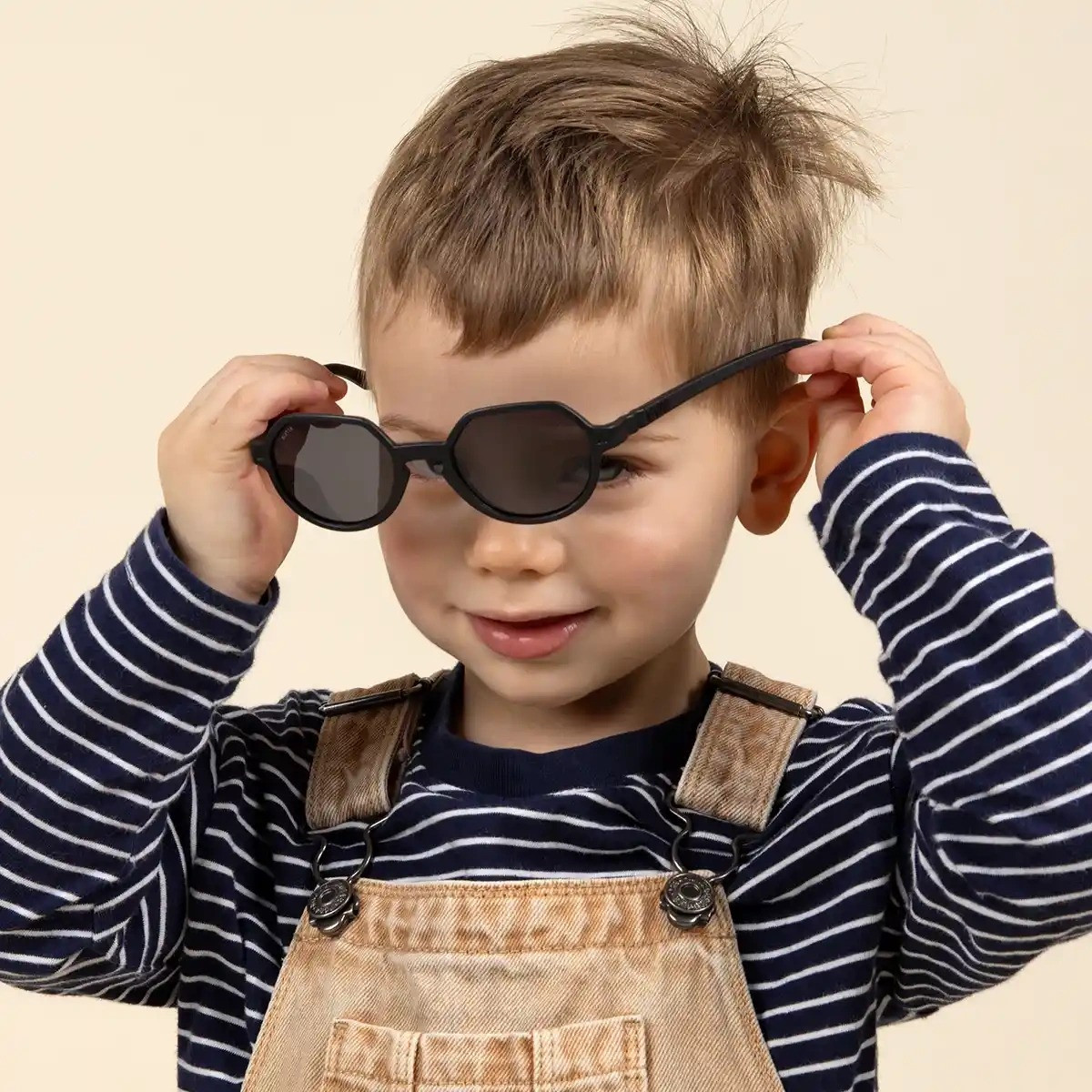 Black OoZZ 2–4 lata to elastyczne okularki przeciwsłoneczne dla dzieci w klasycznym czarnym kolorze. Prosty kształt, lekka konstrukcja i skuteczna ochrona UV sprawdzają się podczas spacerów, zabawy i rodzinnych wyjazdów.