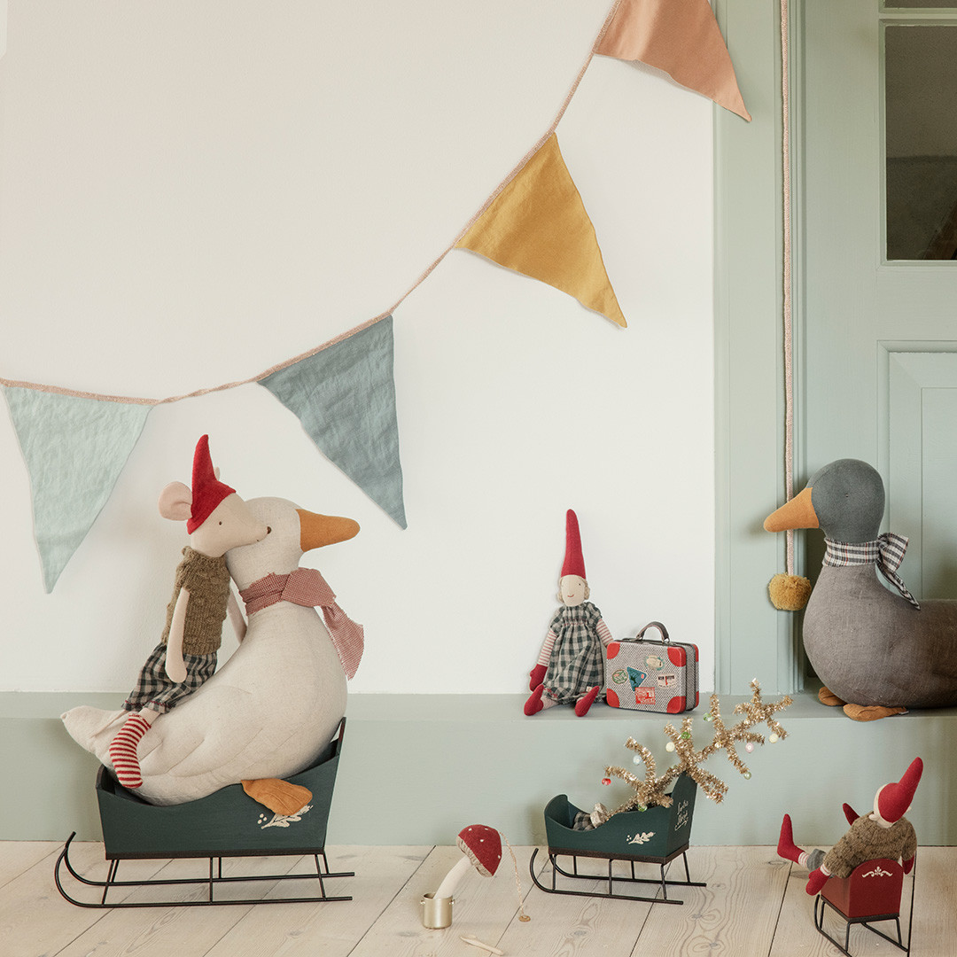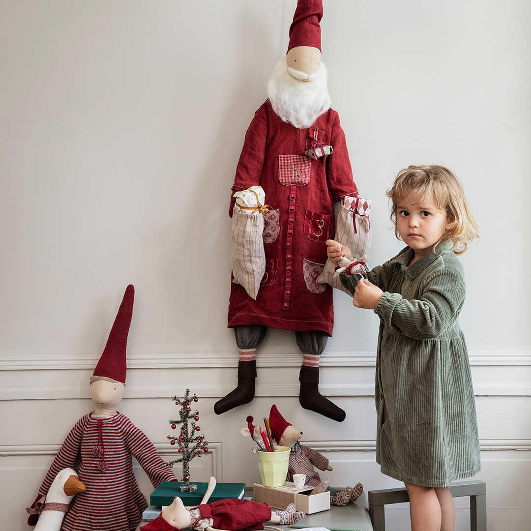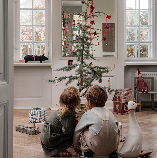 Choinka idealnie pasuje do Piernikowego Domku Maileg. Kolorowe ozdoby i oryginalny stojak wpisują się w świąteczną magię Maileg.
