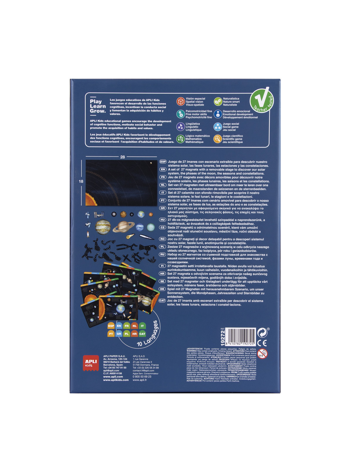 Magnetyczna układanka Apli Kids – Układ Słoneczny to edukacyjna zabawka, która w atrakcyjny i angażujący sposób przybliża dzieciom wiedzę o kosmosie. Dzięki zestawowi 27 kolorowych magnesów maluchy mogą odtwarzać planety, fazy księżyca, pory roku i konstelacje, a także tworzyć własne, niepowtarzalne historie z życia kosmosu.