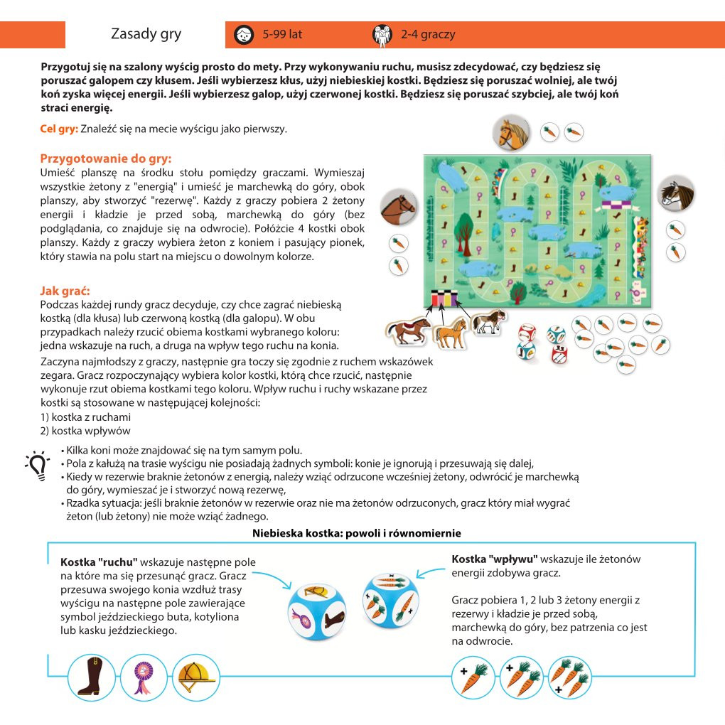 Caballo Cavaliada to ekscytująca gra planszowa dla dzieci od 5 roku życia, w której gracze biorą udział w emocjonującym wyścigu konnym. Nie wystarczy tu tylko szczęście – aby zwyciężyć, trzeba sprytnie zarządzać energią swojego konika i podejmować właściwe decyzje w odpowiednim momencie.