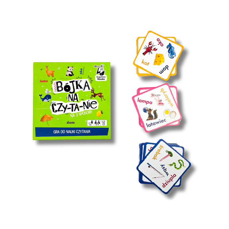Rodzinna gra edukacyjna „Bójka na Czytanie” (6+) – 105 kart, 3 poziomy trudności i metoda sylabowania, która zamienia naukę czytania po polsku w szybką i wciągającą zabawę.
