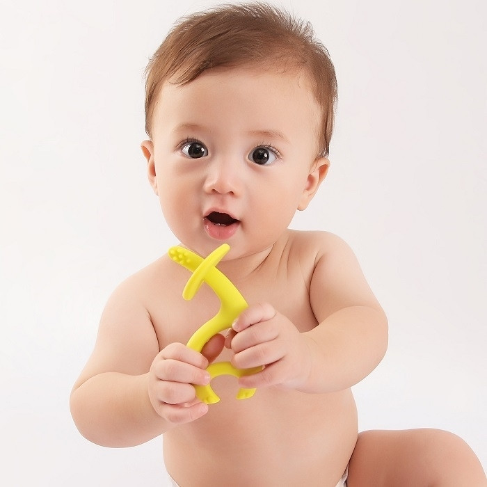 Silikonowy gryzak Słonik Mombella Dancing Elephant – bezpieczny, elastyczny i łagodzący ból dziąseł. Może pełnić rolę pierwszej szczoteczki do zębów.