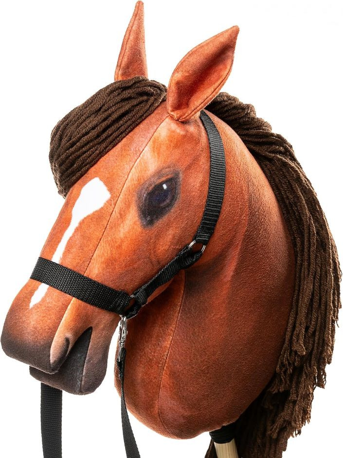 Hobby Horse A3 w kolorze bursztynowym – ręcznie wykonany w Polsce! Duży, realistyczny koń na kiju z kantarem. Idealny do treningów, zawodów i zabawy. Pasuje do akcesoriów Skippi, takich jak derki i nauszniki. Solidne wykonanie i dbałość o detale gwarantują wysoką jakość!