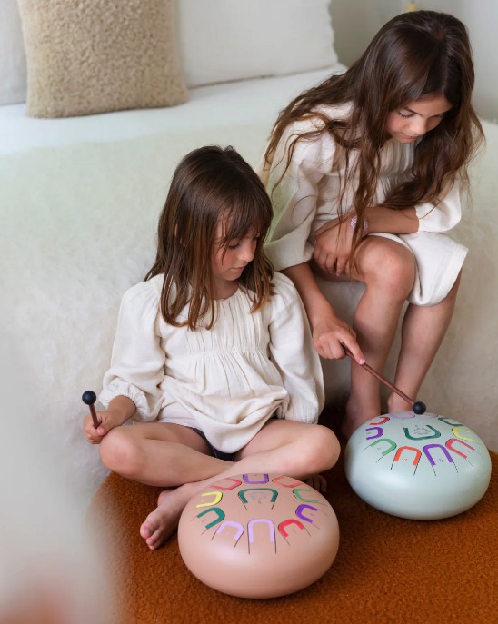 Tambu+ to rozbudowana wersja klasycznego bębenka językowego Tambu, stworzona z myślą o starszych dzieciach, nastolatkach i dorosłych. Większa średnica – 25 cm (10 cali) – oraz 11 precyzyjnie nastrojonych tonów dają szerszy zakres melodyczny, głębsze brzmienie i więcej możliwości tworzenia własnych kompozycji. Ceglasty kolor i nowoczesny design sprawiają, że instrument świetnie prezentuje się zarówno w pokoju dziecka, jak i w salonie czy pracowni terapeutycznej.