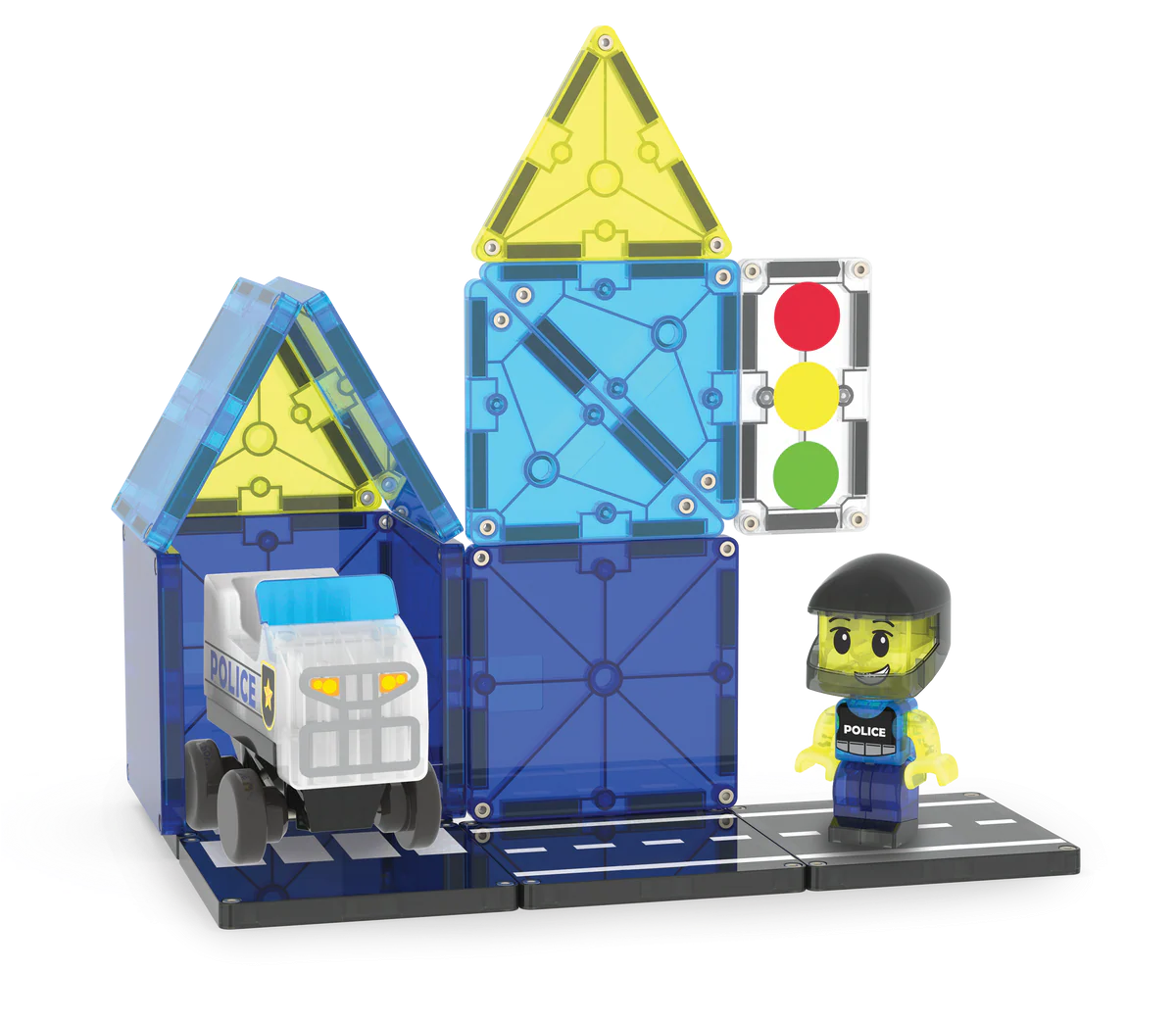 PROMOCJA Policja - Police Patrol - Klocki Magnetyczne 20 elementów z Pojazdem i Figurką - Magna-Tiles