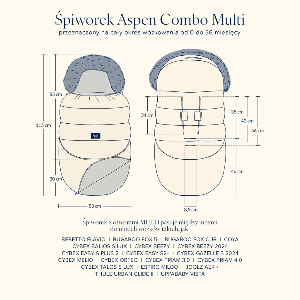 • Uniwersalność – pasuje do większości wózków spacerowych i gondoli, a także świetnie sprawdzi się w sankach.