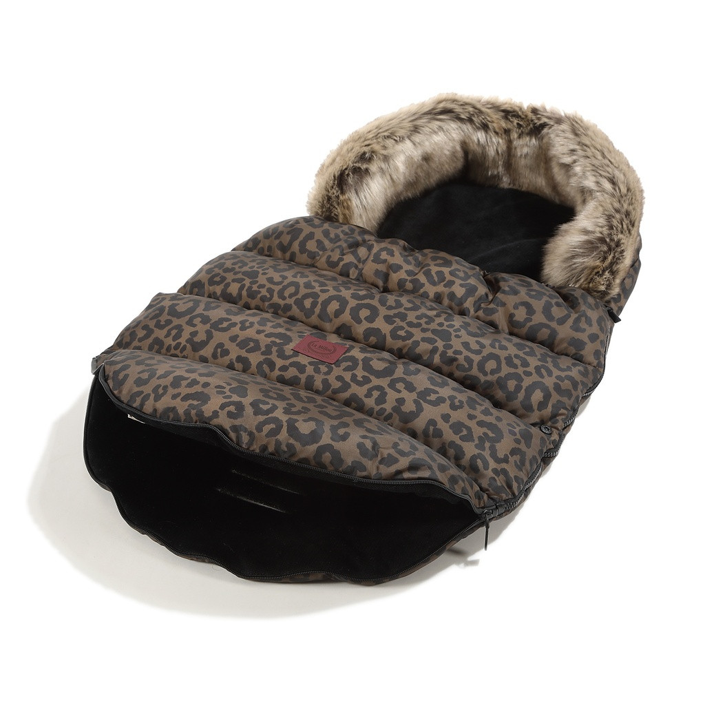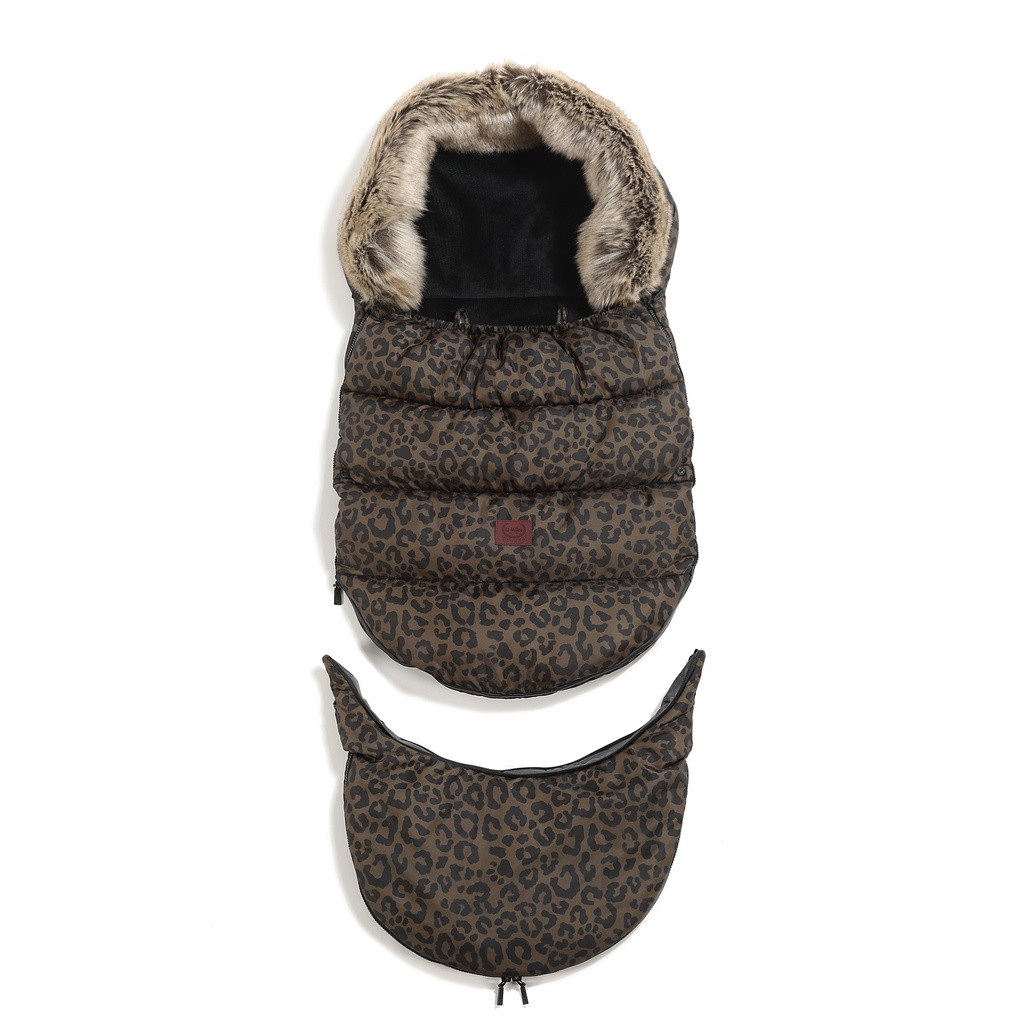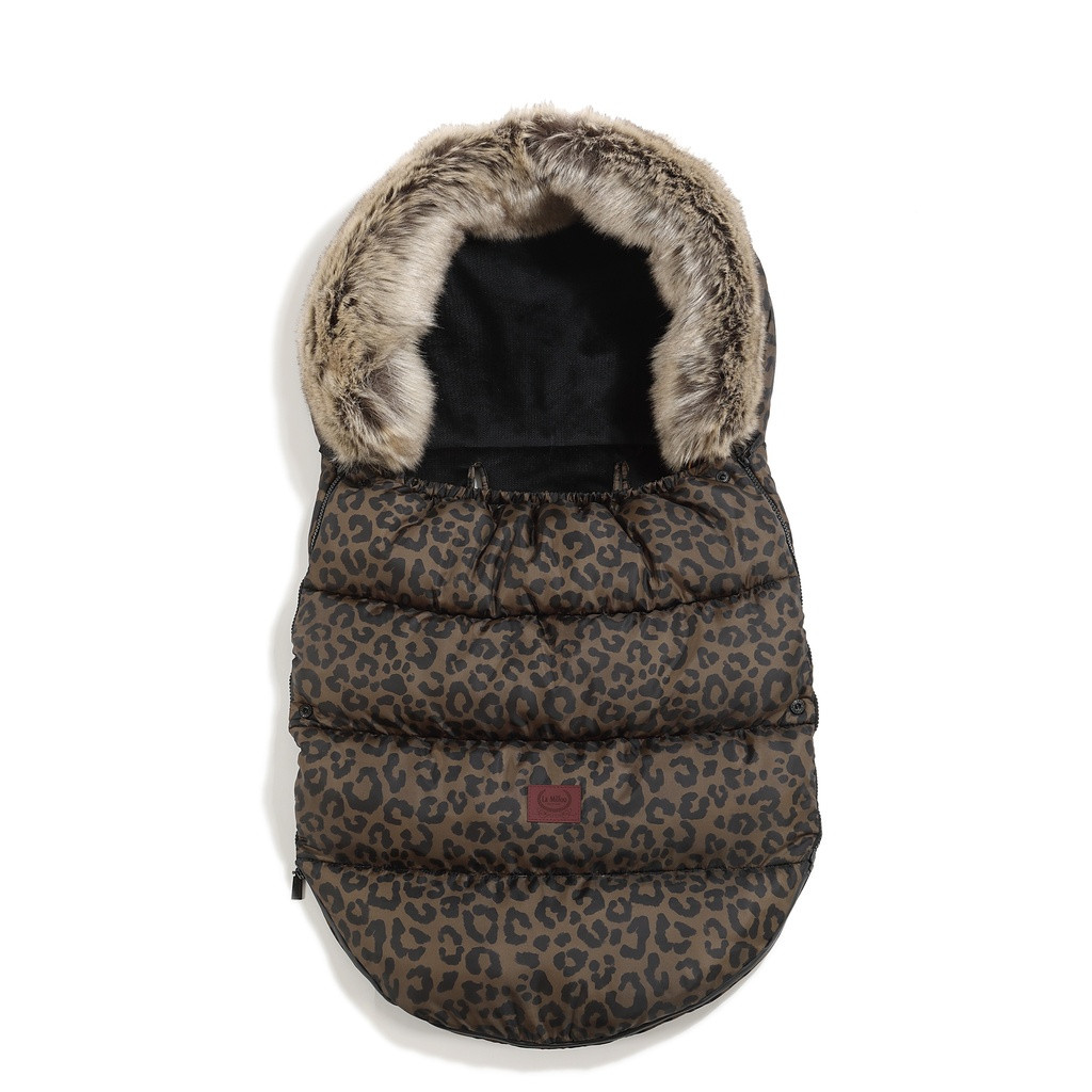Ekskluzywny śpiwór zimowy La Millou Aspen Winterproof Combo Leopard Choco by Magdalena Lamparska. Ciepły, wodoodporny i stylowy – idealny do wózka i na sanki.