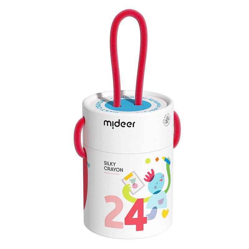 Jedwabiste kredki Mideer 24 kolory to zmywalny zestaw silky crayons w praktycznym wiaderku z uchwytem. Miękko suną po powierzchni, szybko schną i dzięki wykręcanej konstrukcji są wygodne w użyciu także dla młodszych dzieci.