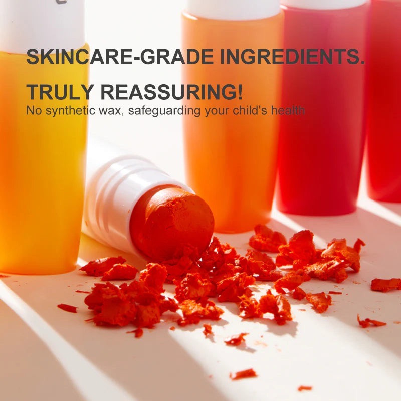 Z Twojej informacji o produkcie wynika, że kredki piszą po wielu powierzchniach. To zwiększa zakres zabawy i sprawia, że zestaw może być wykorzystywany nie tylko do klasycznego kolorowania, ale też do bardziej kreatywnych aktywności. Na grafikach widać mocne, nasycone kolory oraz dobrą siłę krycia. Producent zwraca też uwagę na brak syntetycznego wosku i skład określony jako bezpieczny dla dzieci. Dzięki miękkiej formule kredki nie wymagają mocnego dociskania i pozwalają dziecku szybciej osiągnąć wyraźny efekt.