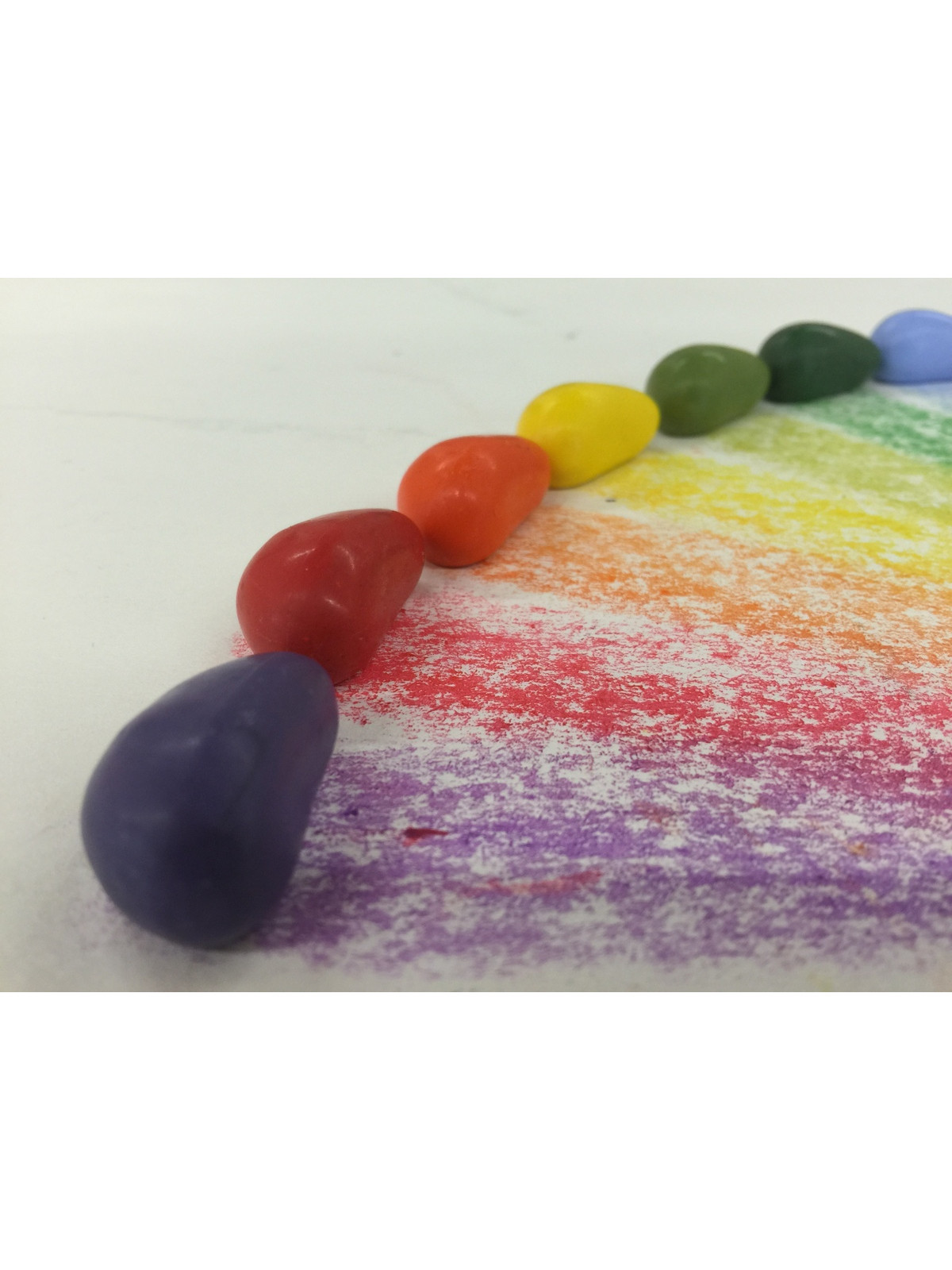 Kredki są ręcznie produkowane w USA z lokalnie pozyskiwanego wosku sojowego. Nie zawierają alergenów, glutenu, substancji ropopochodnych ani GMO. Ich delikatny, lekko matowy wygląd jest efektem naturalnych procesów woskowych – na powierzchni kredek może pojawić się biały osad, który znika po lekkim przetarciu lub podczas rysowania.