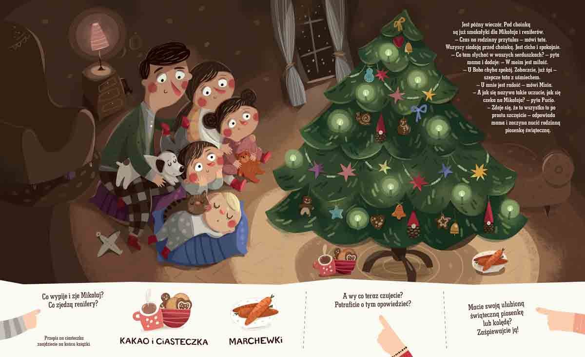 Ta książka zabiera małych czytelników w świat dobrze znanych przedświątecznych emocji: radości, ekscytacji, niepokoju o to, czy wszystko się uda, i wielkiego wzruszenia przy wspólnej kolacji.