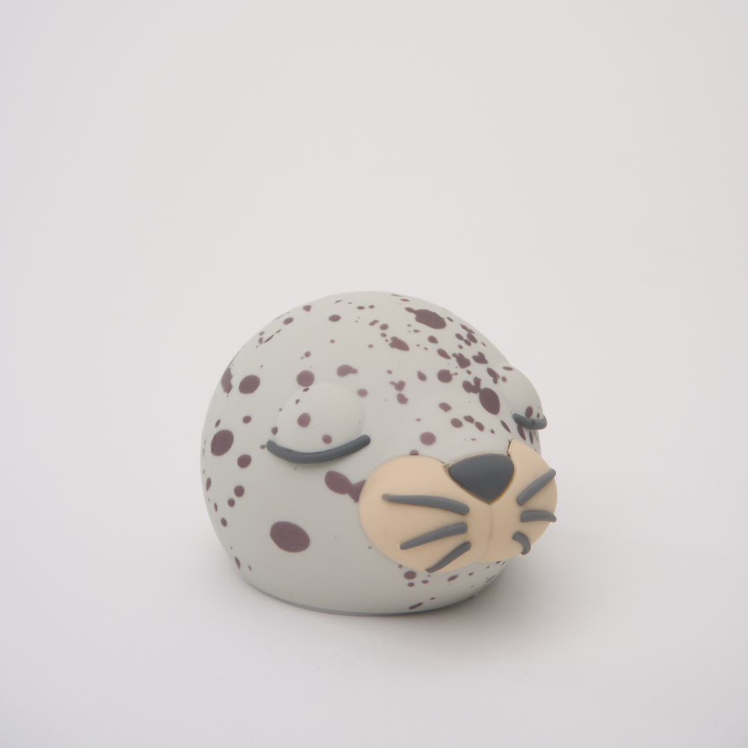 Asobu Bestie Bottle Foka Zippy 460 ml to szara butelka termiczna ze słomką i silikonową zakrętką z głową foki. Łączy spokojny wygląd z praktyczną izolacją, która utrzymuje zimne napoje do 24 godzin, a ciepłe do 12 godzin.
