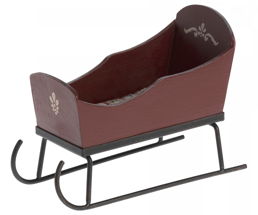 Urocze sanie z miękkim materacem zapewnią pasażerom ciepło i wygodę podczas jazdy. Piękne, ręcznie malowane detale. Produkt idealnie pasuje do najmniejszych przyjaciół i myszek Maileg.