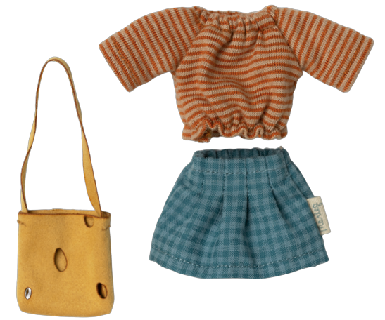 Mama Pomarańczowa Bluzka Niebieska Spódnica i Torebka - Ubranko Dla Myszki - Mum Clothes For Mouse - Maileg