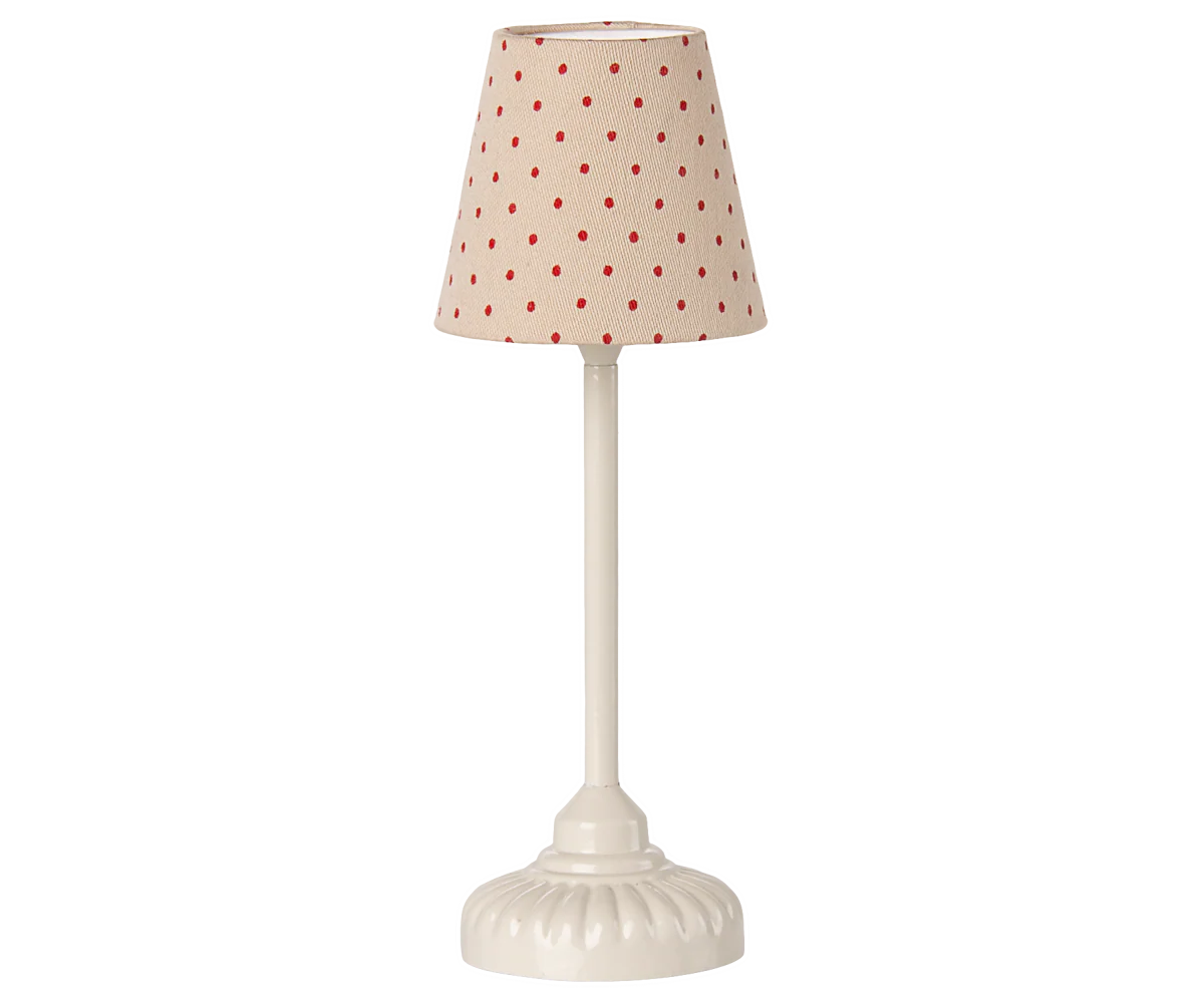 closeUrocza beżowa lampa podłogowa Maileg – świeci delikatnym światłem, tworząc w miniaturowym świecie myszek przytulny klimat. Idealny dodatek do domku Maileg.
