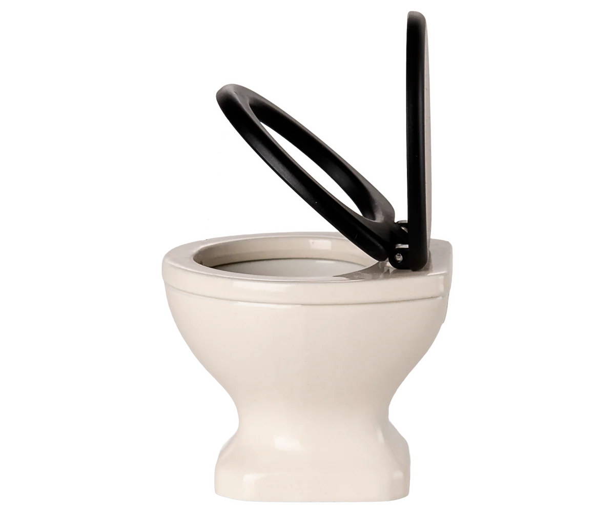 Toaleta Maileg dla myszek – urocza mini muszla WC z otwieraną klapą, idealna do łazienki w domku Maileg. Realistyczny detal, który dodaje zabawie autentycznego uroku.