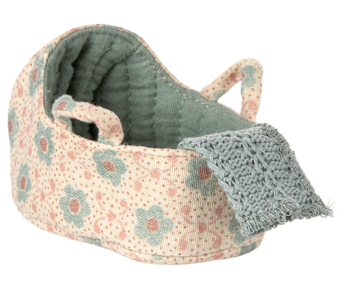Nosidełko posiada miękkie wnętrze i delikatny kocyk, dzięki czemu każda myszka może spokojnie odpocząć po całym dniu zabawy. Jego subtelny, niebieski kolor doskonale komponuje się z innymi akcesoriami Maileg, tworząc harmonijny, bajkowy świat pełen detali i uroku.