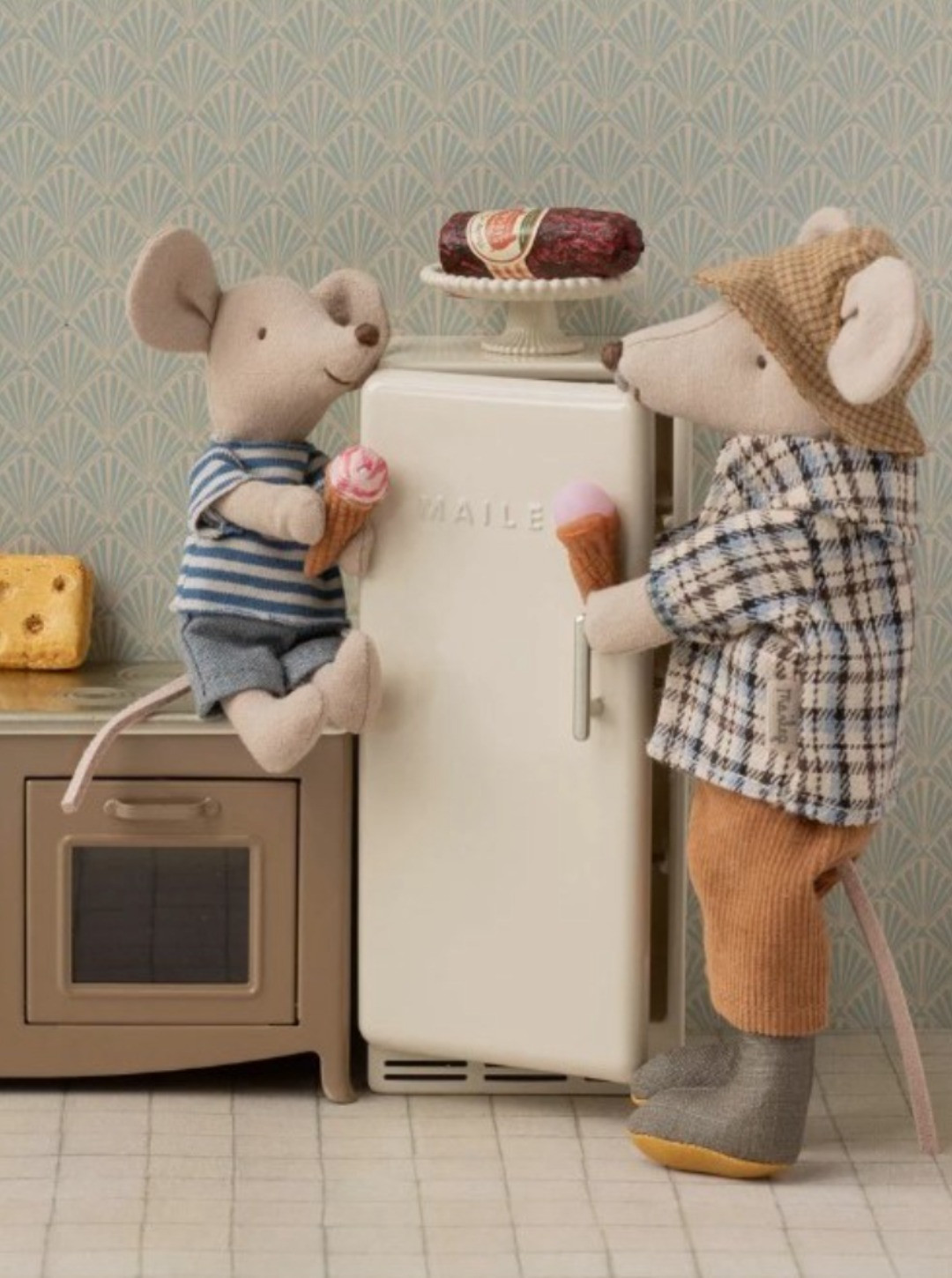 Jak się bawić? Zapraszaj Myszka Dziadka na herbatkę, wspólne czytanie książek i rodzinne spotkania z innymi myszkami Maileg. Połącz go z Babcią, rodzicami i myszimi wnukami oraz mebelkami z oferty sklepu Popaopa, aby stworzyć pełen, rodzinny świat Maileg.