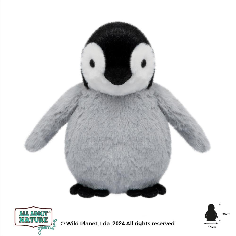 Realistyczny pluszak pingwin Wild Planet z kolekcji All About Nature Green to miękka maskotka o łagodnym wyglądzie i ekologicznym charakterze. Został wykonany ręcznie z przyjemnego w dotyku poliestru pochodzącego w 100% z recyklingu butelek PET, dlatego dobrze sprawdza się jako przytulanka i prezent.
