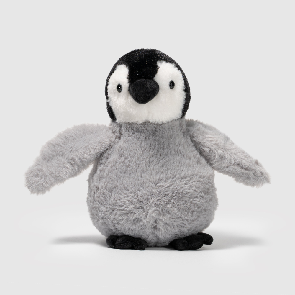 Seria All About Nature Green powstała z myślą o maskotkach, które łączą realistyczny wygląd zwierząt z bardziej świadomym podejściem do materiałów. W tym modelu dobrze widać oba te elementy. Sylwetka pingwina została uproszczona w sposób przyjazny dla dziecka, ale nadal zachowuje cechy charakterystyczne dla tego gatunku: ciemną głowę, biały pyszczek, jasnoszare ciało, niewielkie skrzydła i krótkie stópki. Całość wygląda spokojnie, miękko i naturalnie, dlatego pingwin dobrze odnajduje się zarówno jako przytulanka do codziennego kontaktu, jak i jako element kolekcji pluszaków inspirowanych zwierzętami.