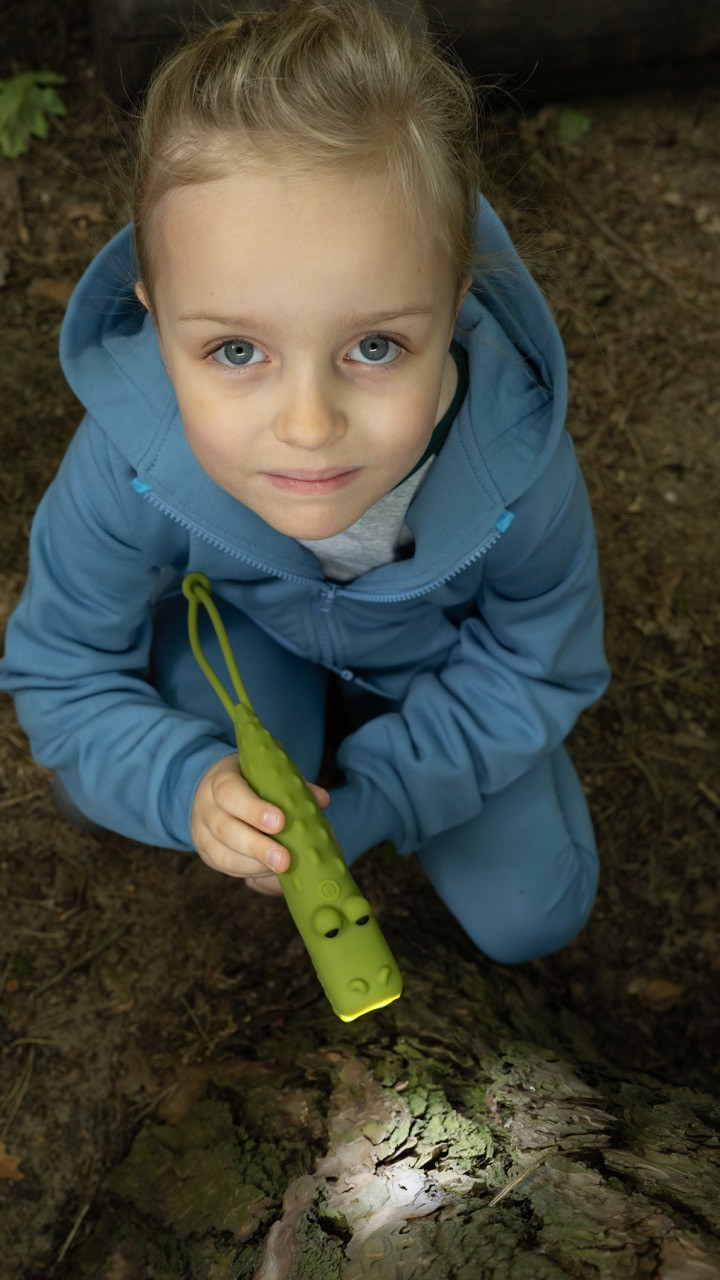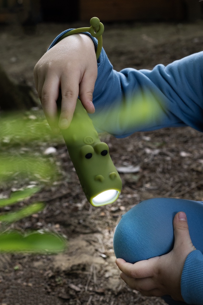 Dzięki latarce Krokodyl CROCO dziecko może czuć się bezpiecznie nawet w ciemności. Doskonale sprawdzi się jako towarzysz podczas wieczornego czytania książek, nocnych wędrówek do łazienki czy budowania baz w pokoju. Można jej używać w formie klasycznej latarki lub jako lampkę nocną w trybie ciepłego, rozproszonego światła.