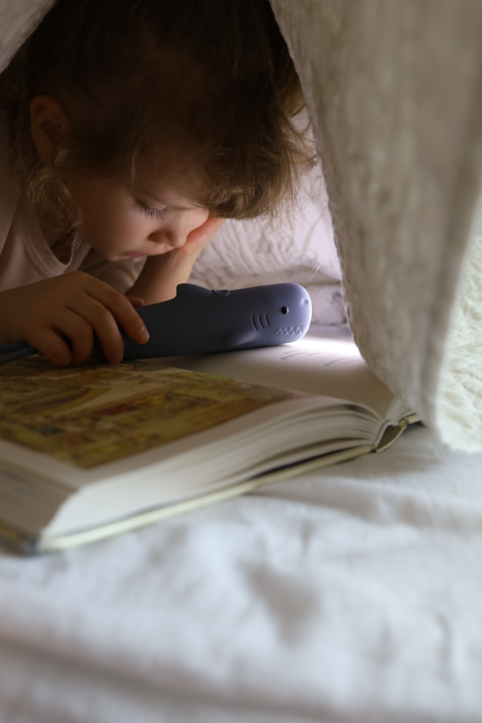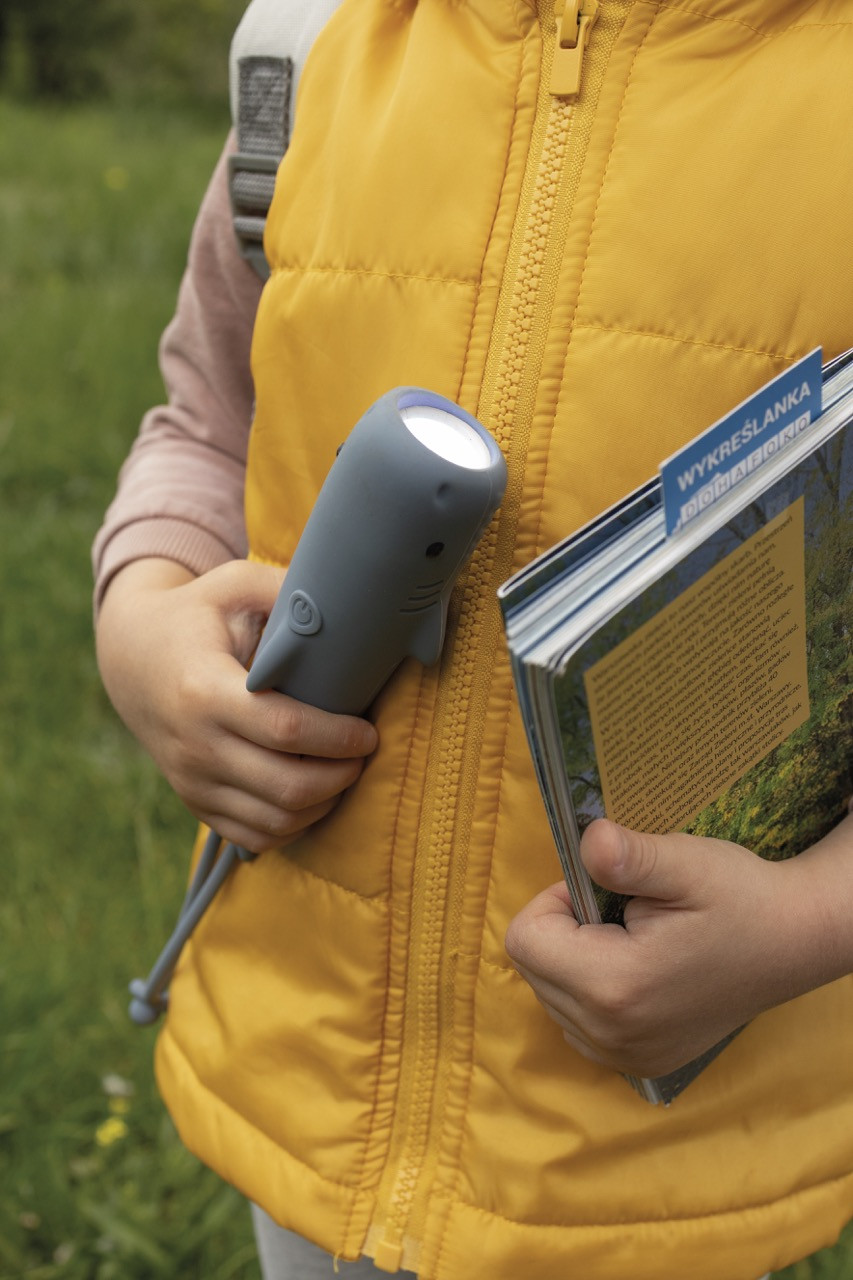 Dzięki latarce Rekin Sharky dziecko może czuć się bezpiecznie nawet w ciemności. Doskonale sprawdzi się jako towarzysz podczas wieczornego czytania książek, nocnych wędrówek do łazienki czy budowania baz w pokoju. Można jej używać w formie klasycznej latarki lub jako lampkę nocną w trybie ciepłego, rozproszonego światła.