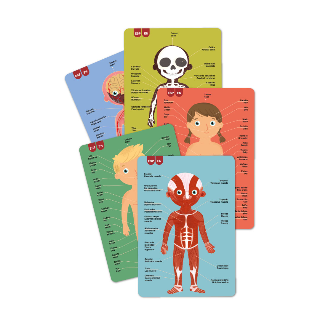 Zestaw składa się z planszy oraz 63 magnetycznych elementów, przedstawiających szkielet, narządy oraz mięśnie. Dodatkowo, w zestawie znajduje się 15 kart informacyjnych w 19 językach, w tym w języku polskim, zawierających szczegółowe opisy poszczególnych części ciała.