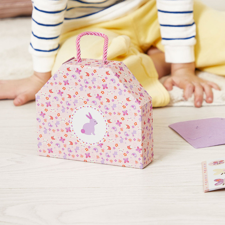 Całość została zapakowana w kartonowe pudełko w formie małego domku lub torebki z rączką, co od razu nadaje zestawowi prezentowy charakter. Nie trzeba kompletować dodatkowych materiałów, bo wszystko, co potrzebne do wykonania spinek, znajduje się w środku. To wygodne rozwiązanie dla rodzica i atrakcyjna forma dla dziecka. Zestaw można wręczyć jako upominek urodzinowy, kreatywną niespodziankę albo element większego pakietu plastycznego.