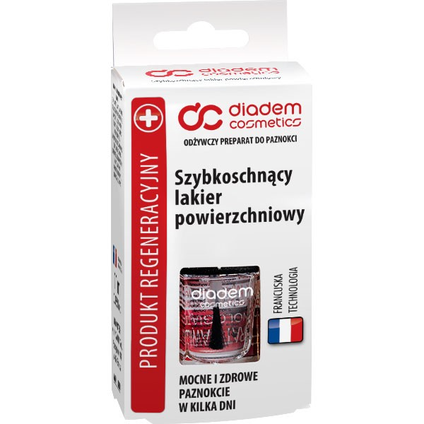 Szybkoschnący lakier powierzchniowy Diadem Cosmetics Szafir 11 ml – bezbarwny top coat, który błyskawicznie wysycha, nabłyszcza, utrwala i chroni manicure.