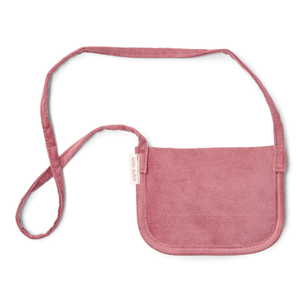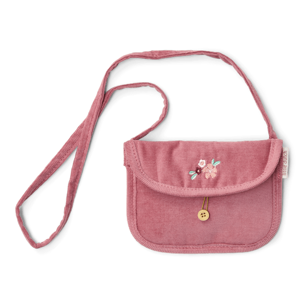 closeUrocza różowa torebka Little Dutch z haftowanym kwiatkiem. Miękka sztruksowa kopertówka doda uroku każdej stylizacji i pomieści dziecięce skarby.