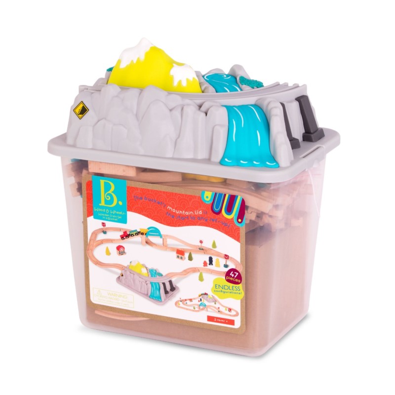 UWAGA: B.toys oferuje różne modele drewnianych pociągów, którymi można urozmaicić zabawę po zaaranżowaniu górskiej kolejki – patrz Wood & Wheels – Wooden Trains.