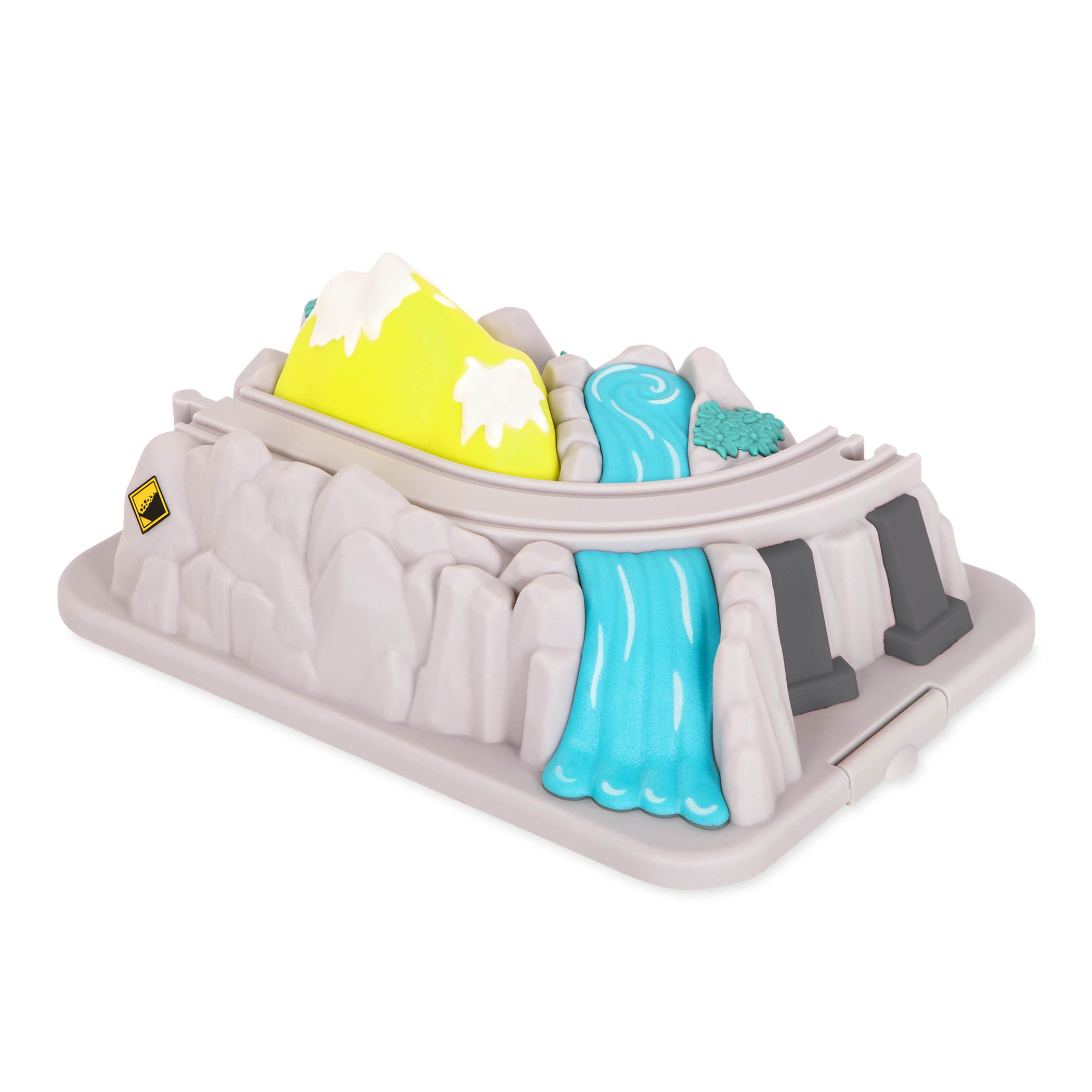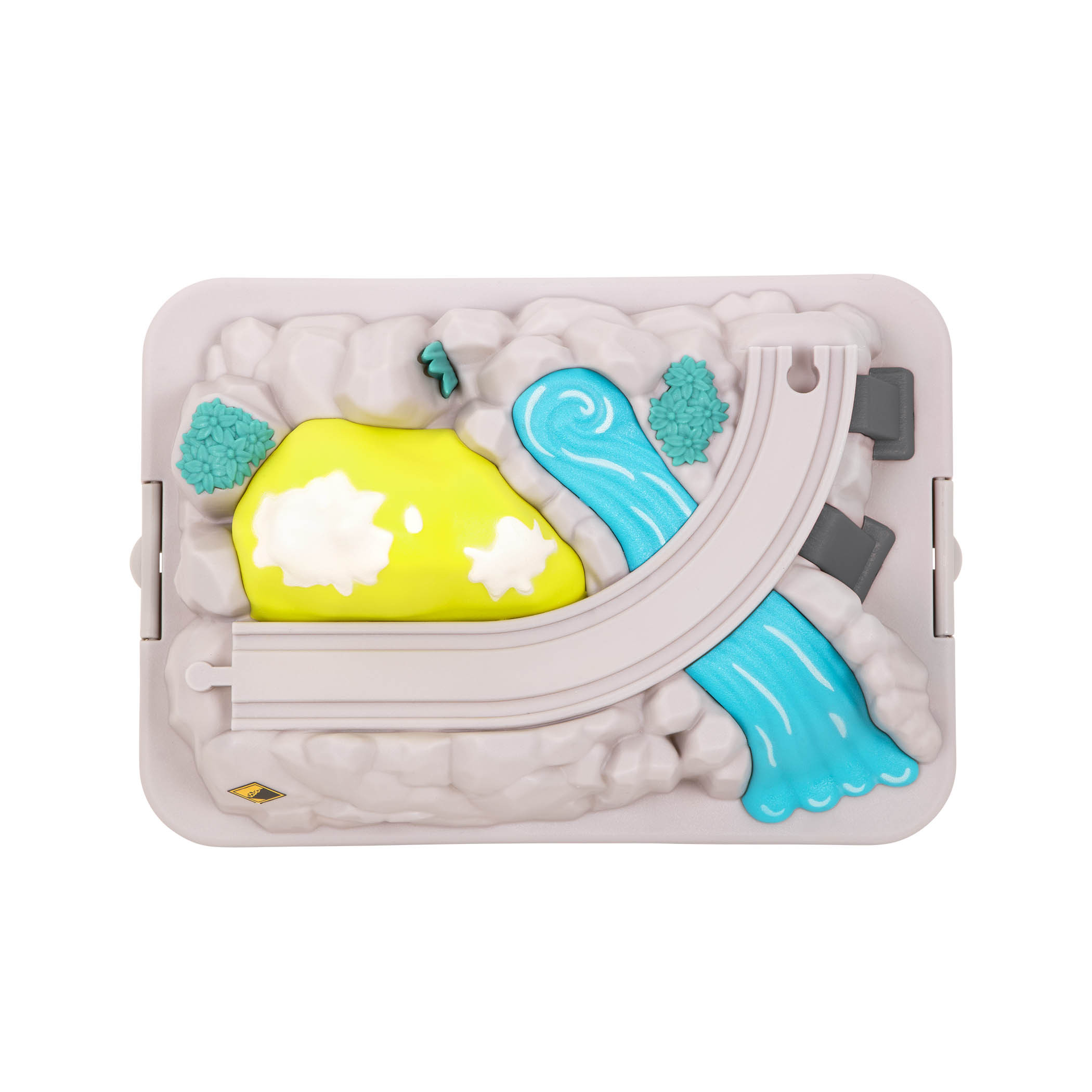 Całość w praktycznym wiaderku, z pokrywą w kształcie gór do połączenia z torami.