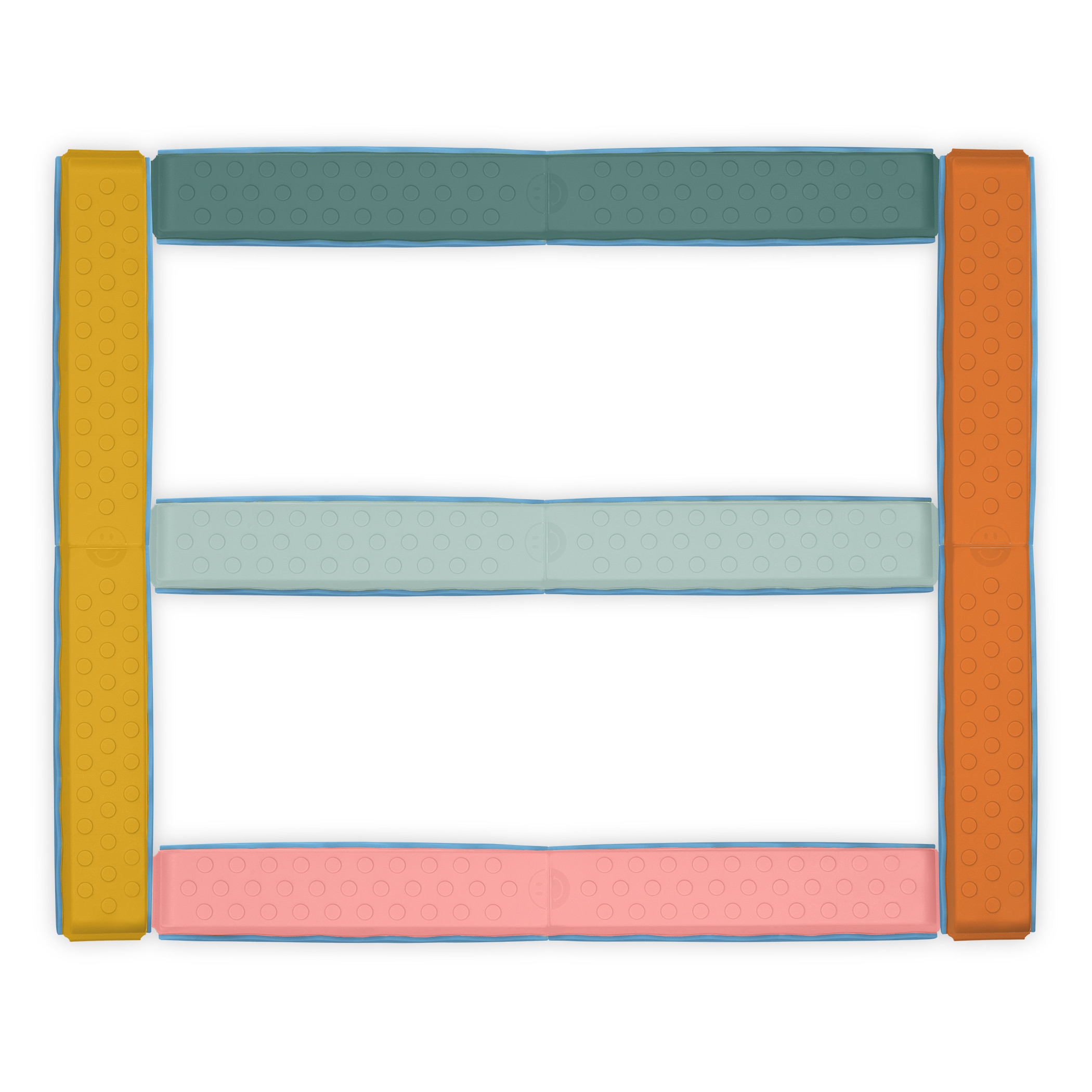 Różne kolory, wypukłe wzory na powierzchni i antypoślizgowy spód sprawiają, że belki są bezpieczne i atrakcyjne wizualnie, a jednocześnie dostarczają cennych bodźców dotykowych. Trasy można układać na wiele sposobów – od jednej prostej belki, przez zygzaki, aż po rozgałęzione ścieżki z koniecznością wyboru kierunku. Nuda wykluczona, frajda gwarantowana.