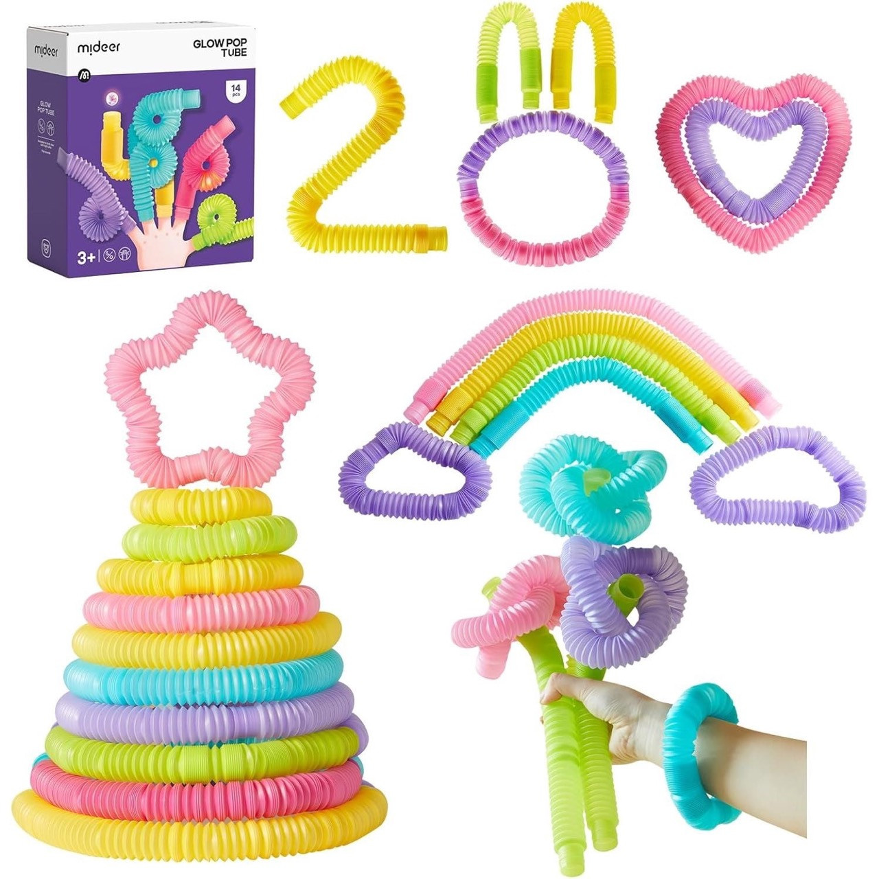 Elastyczne rurki sensoryczne Mideer ze świecącymi kulkami zachęcają do wyginania, łączenia i tworzenia własnych kształtów. To lekka zabawka manualna, która angażuje ręce, pobudza wyobraźnię i sprawdza się także poza domem.