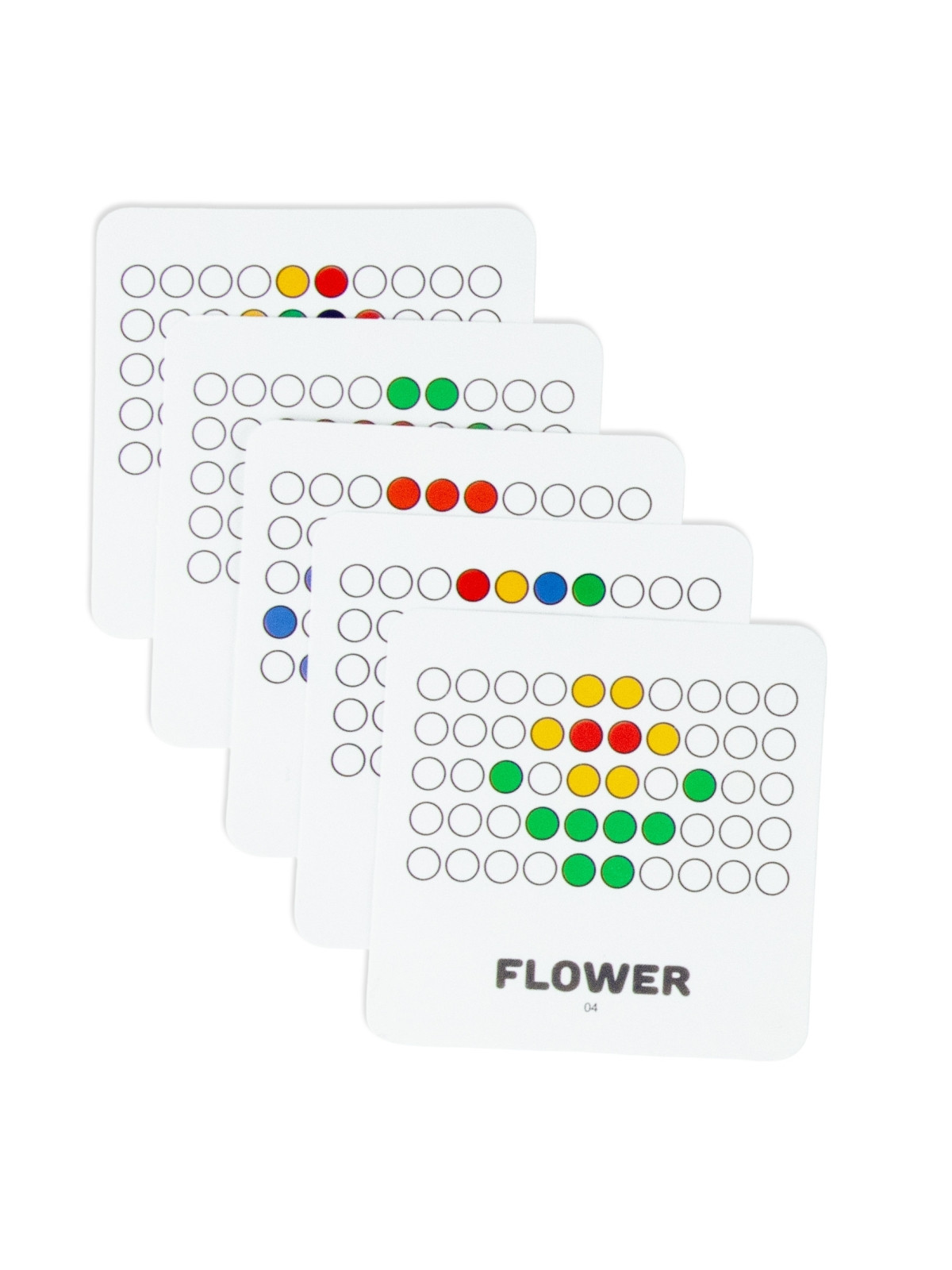 - Zestaw: plansza magnetyczna, magnetyczny rysik, kolorowe magnetyczne kropki, 10 kart z wzorami