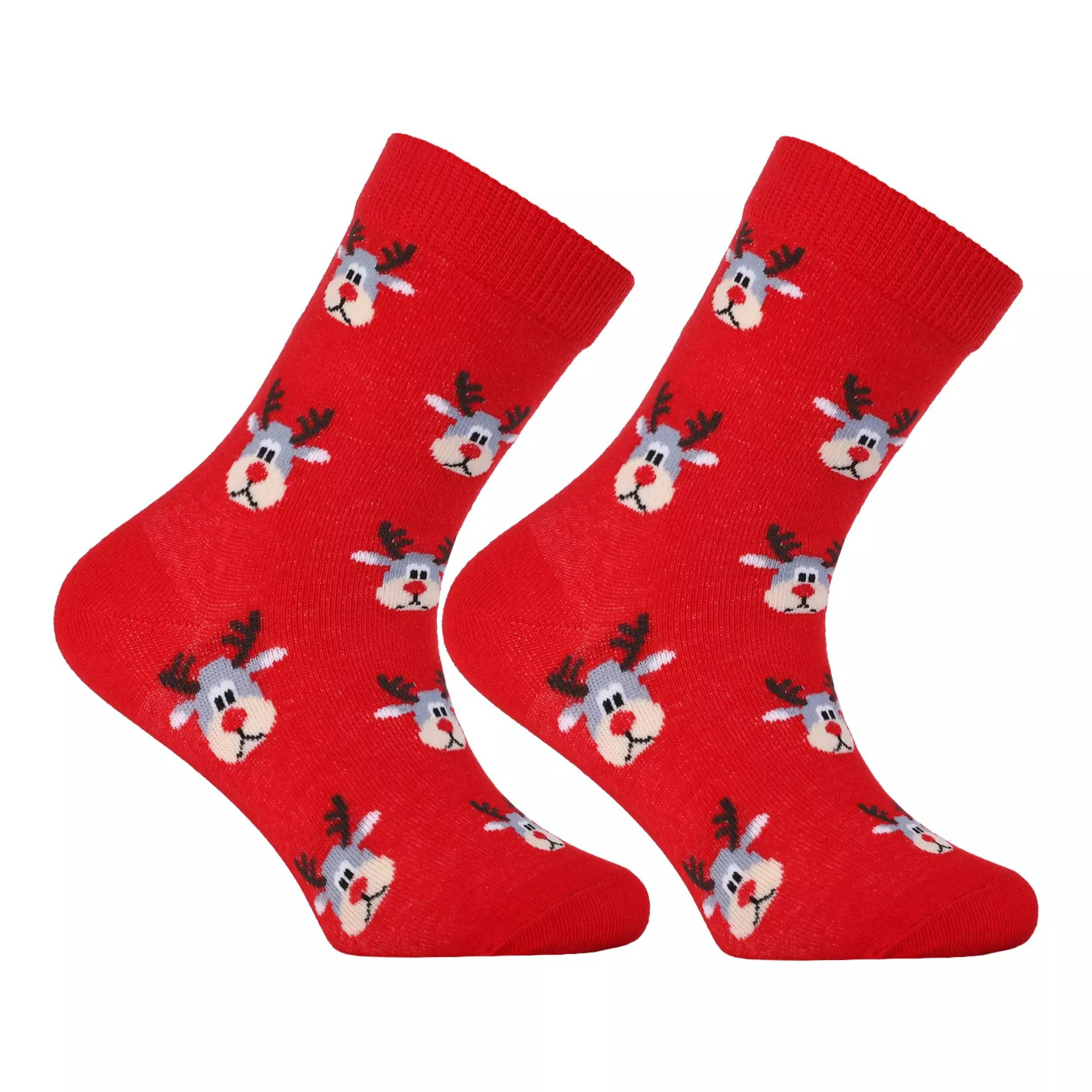 - Wzór: świąteczny – kilkanaście małych główek uśmiechniętego renifera na całej skarpetce