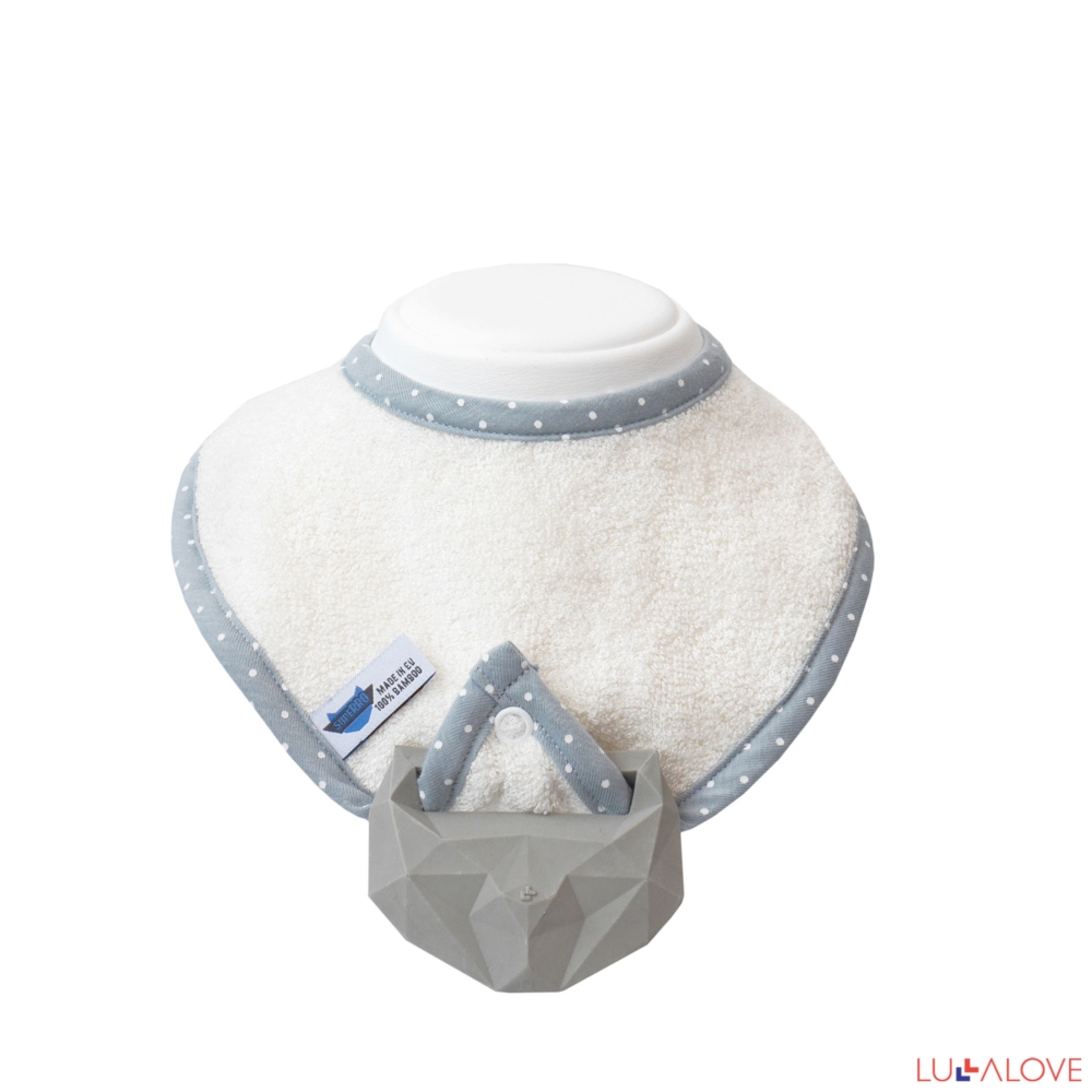 Jedyne takie połączenie naturalnego kauczuku i chłonnej wiskozy bambusowej, które ułatwi trudny czas ząbkowania. Gryzak wykonany jest w 100% z kauczuku pozyskanego z drzewa kauczukowca. Jest robiony ręcznie i barwiony farbami na bazie pigmentów spożywczych. Gryzak jest lekki, poręczny i bardzo miękki przez co doskonale masuje swędzące dziąsła. Sekretem produktu jest możliwość doczepiania gryzaka do bambusowego śliniaczka dzięki czemu jest on zawsze na swoim miejscu. Grubość gryzaka idealnie nadaje się do bezproblemowego gryzienia oraz samodzielnego chwycenia już od 3 miesiąca życia.