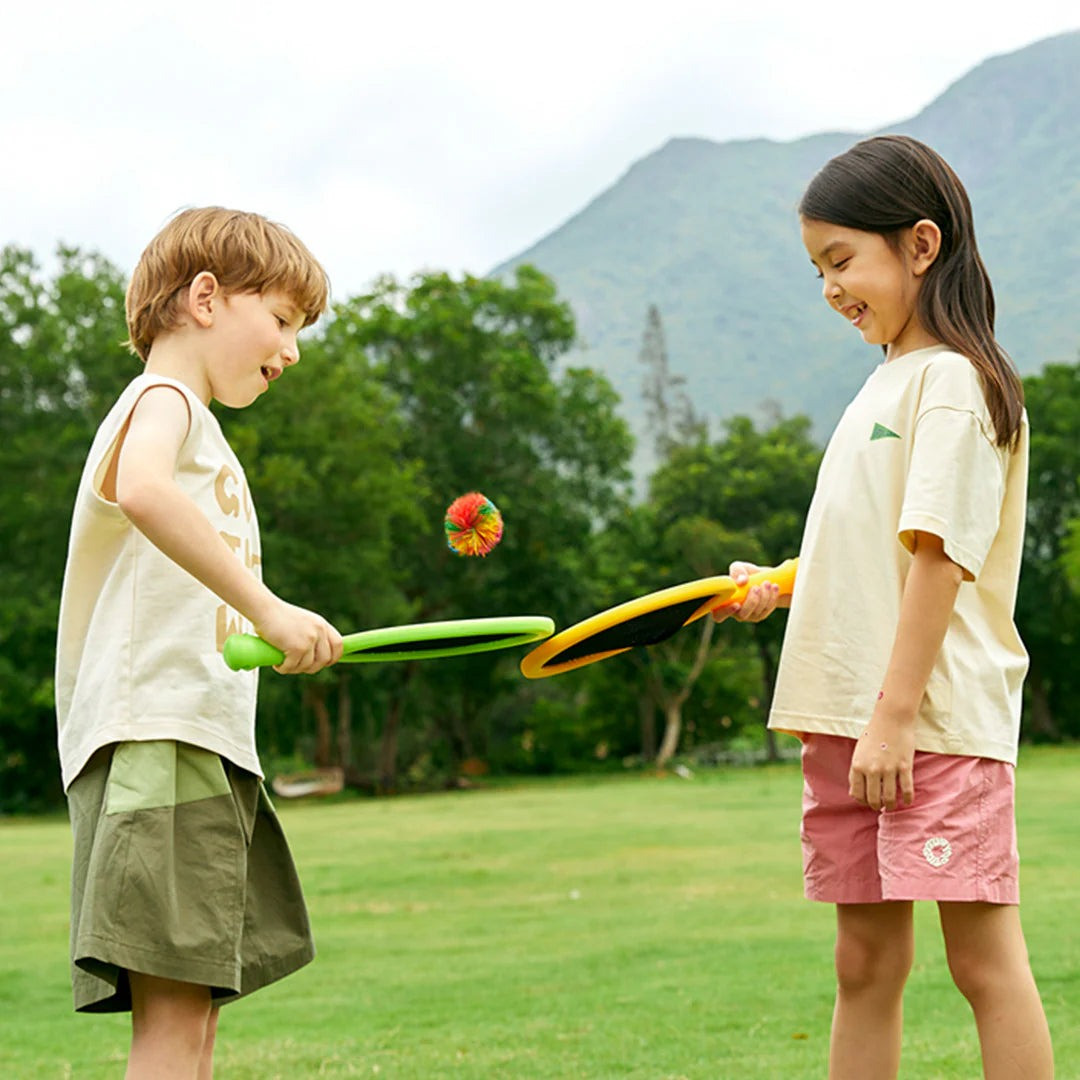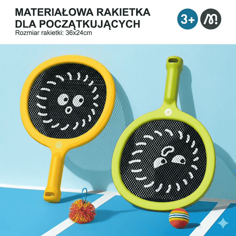 Rakietki dla dzieci Mideer z 2 piłkami to zestaw stworzony z myślą o pierwszych próbach odbijania, łapania i wspólnej zabawy w ruchu. Lekkie paletki z miękką siatką zostały przygotowane dla początkujących, dlatego pomagają dziecku szybciej oswoić się z koordynacją ręka–oko i rytmem gry. Poszerzona powierzchnia odbicia zwiększa szansę trafienia, co ma duże znaczenie na starcie i ogranicza zniechęcenie po nieudanych próbach. To propozycja do zabawy w domu, w ogrodzie i wszędzie tam, gdzie jest trochę miejsca na aktywność.