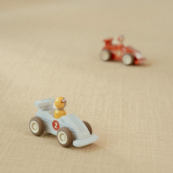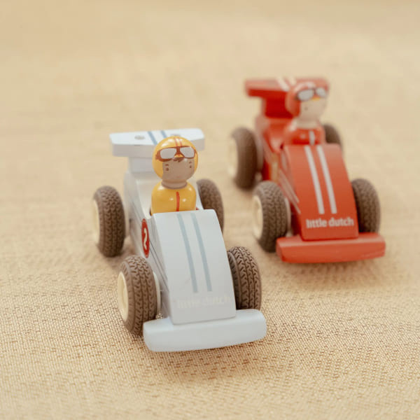 closeZestaw dwóch drewnianych wyścigówek Little Dutch z ludzikami–kierowcami to doskonała zabawa dla małych fanów motoryzacji. Autka są solidne, kolorowe i łatwe do chwytania przez małe rączki.
