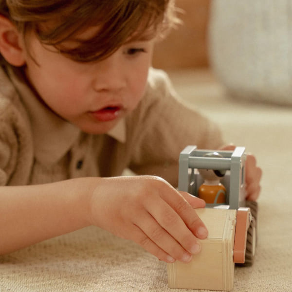 Drewniana ciężarówka z dźwigiem od Little Dutch pozwala dzieciom wcielić się w rolę operatora budowy. Solidne wykonanie i ruchome ramię sprawiają, że maluchy mogą podnosić i przenosić „ładunki”, rozwijając przy tym zdolności manualne, koordynację ręka–oko oraz kreatywność.