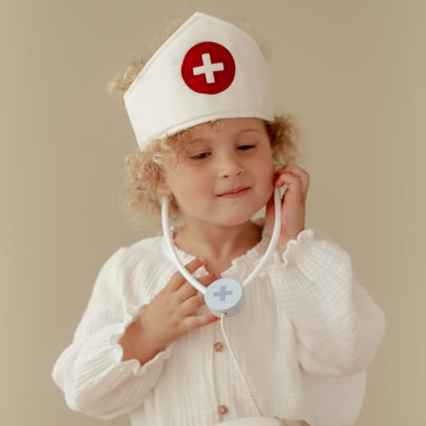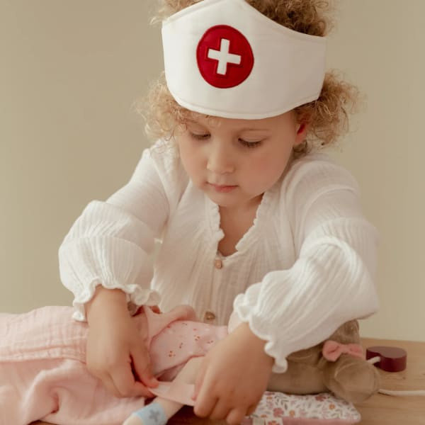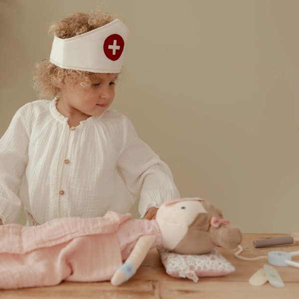 closeDrewniany zestaw małego lekarza Little Dutch w praktycznej walizeczce to komplet akcesoriów do zabawy w doktora. Rozwija wyobraźnię, empatię i zdolności społeczne dziecka.