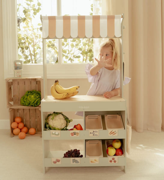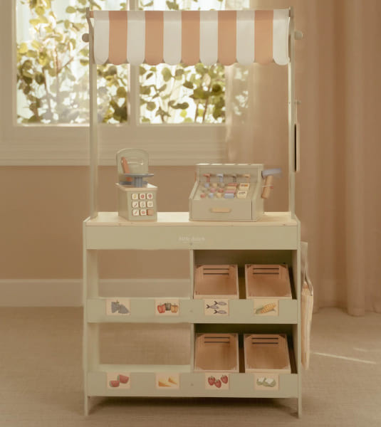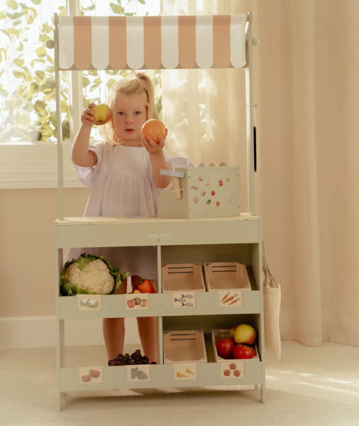 Marka Little Dutch słynie z produktów tworzonych z myślą o bezpieczeństwie i estetyce. Pastelowe kolory i staranne wykonanie sprawiają, że stragan jest nie tylko zabawką, ale także piękną ozdobą pokoju dziecięcego. Zabawa w sklepik rozwija umiejętności społeczne, wspiera naukę liczenia i zachęca do kreatywnego myślenia.