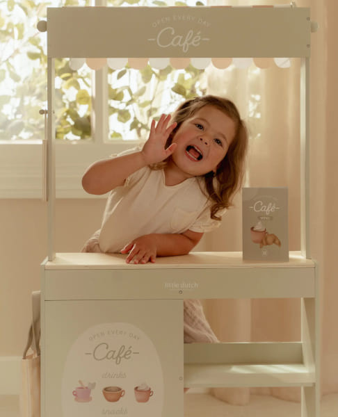 Drewniany stragan i kawiarnia Little Dutch to wyjątkowa zabawka 2w1 – sklepik z warzywami i owoce oraz urocza kawiarenka z menu. Idealna do zabawy w odgrywanie ról i nauki przez zabawę.
