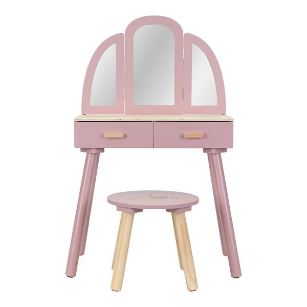 Mebel został wykonany z drewna posiadającego certyfikat FSC®, co oznacza, że pochodzi z odpowiedzialnie zarządzanych źródeł. Stabilna konstrukcja toaletki i taboretu zapewnia komfort użytkowania, a zaokrąglone krawędzie zwiększają bezpieczeństwo podczas codziennej zabawy.