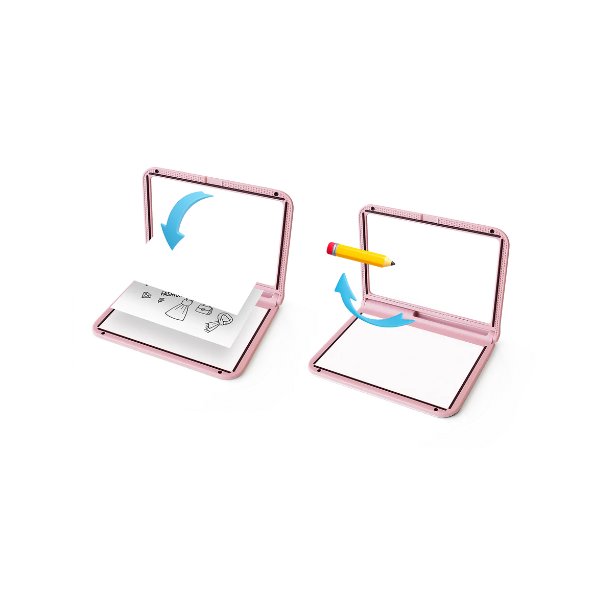 Różowy tablet rysunkowy KidyDraw PRO Fashion od KIDYWOLF zamienia każde biurko w prawdziwe studio mody. Dzięki sprytnemu systemowi szablonów dziecko może dowolnie łączyć sylwetki, stroje, dodatki i wzory, tworząc własne kolekcje niczym młody projektant. To kreatywna, podświetlana zabawa bez ekranu, która rozwija styl, wyobraźnię i pewność siebie.