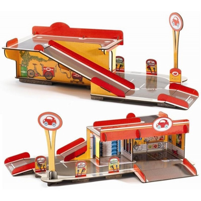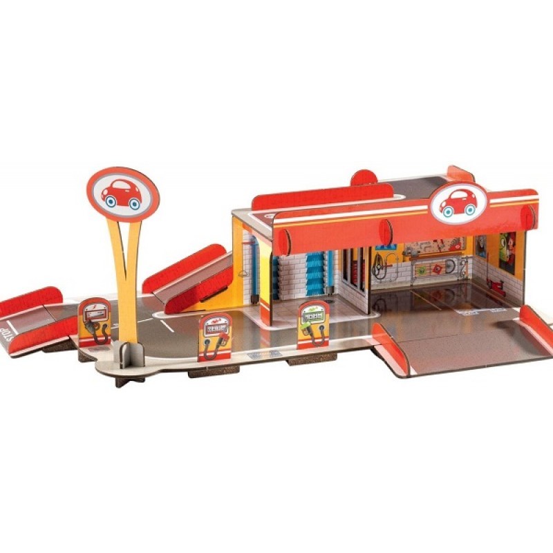 Układanka przestrzenna - Garaż to doskonała zabawa dla rozwoju wyobraźni malucha! Garaż, wykonany z bardzo grubej tektury, jest łatwy do zbudowania, jak i do zdemontowania. Model 3D po złożeniu ma wymiary: szer. 50 cm x gł. 31 cm x wys. 20 cm. Zdobią go fantastyczne szczegółowe dekoracje, dzięki którym odkryjemy warsztat do naprawy samochodów, myjnię, stację benzynową i parking. Garaż 3D zapewni wspaniałą zabawę z autkami każdemu małemu kierowcy!